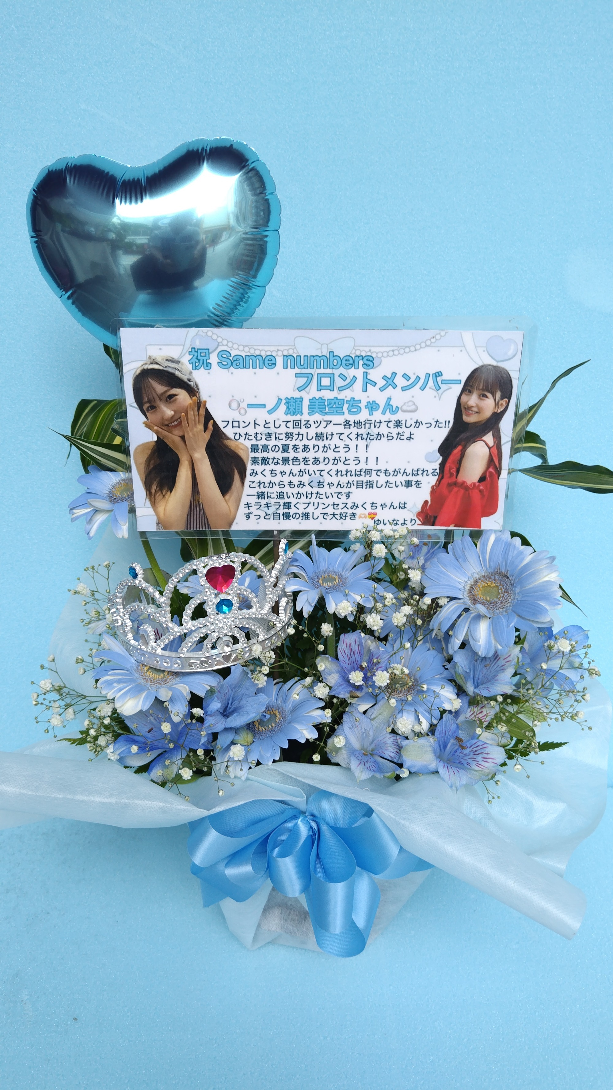 #-5,000円 #握手会・オンラインお話し会 #フラワーデザイナー浅野 #ブルー #楽屋花 #推し花 #幕張メッセ #乃木坂46 #アイドル #リアルミート&グリート #一ノ瀬美空 #オリジナル立て札 #バルーン #可愛い