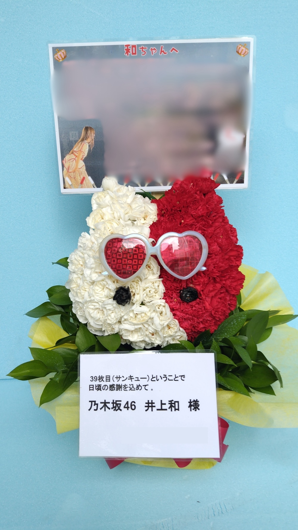 #10,000円 #握手会・オンラインお話し会 #フラワーデザイナー浅野 #赤 #楽屋花 #推し花 #幕張メッセ #井上和 #アイドル #乃木坂46 #リアルミート&グリート #オリジナル立て札 #モチーフ