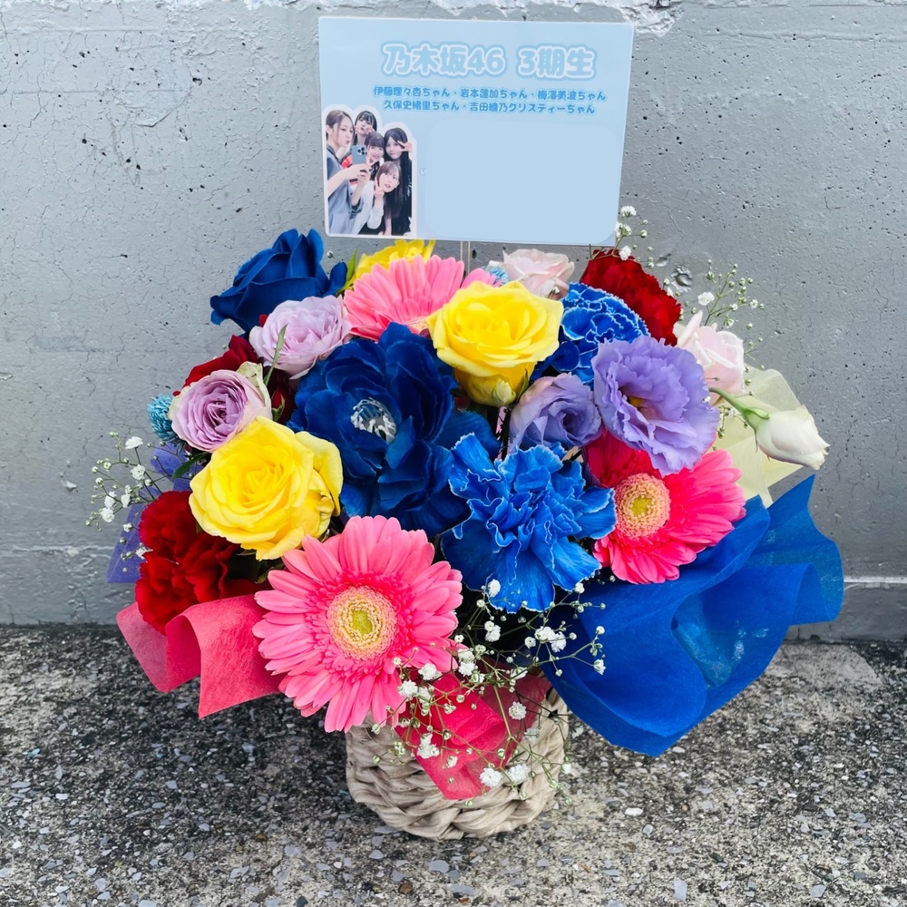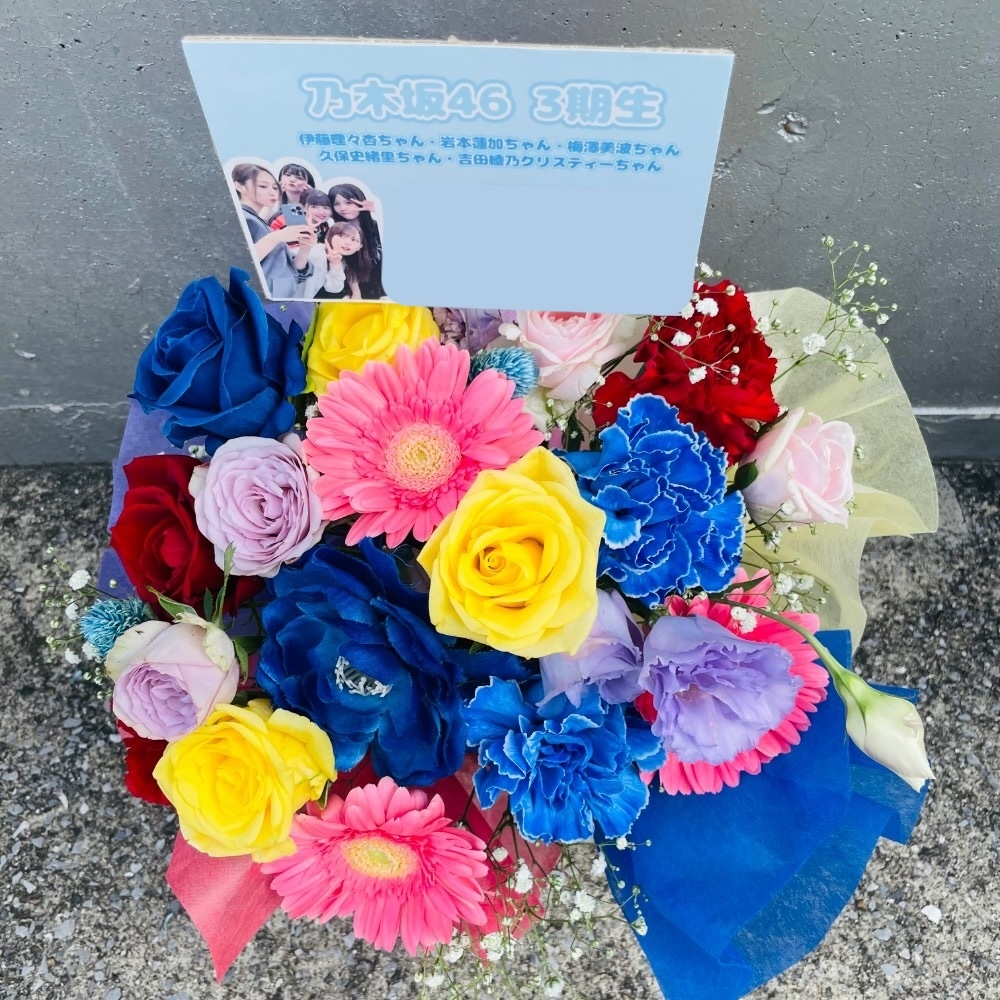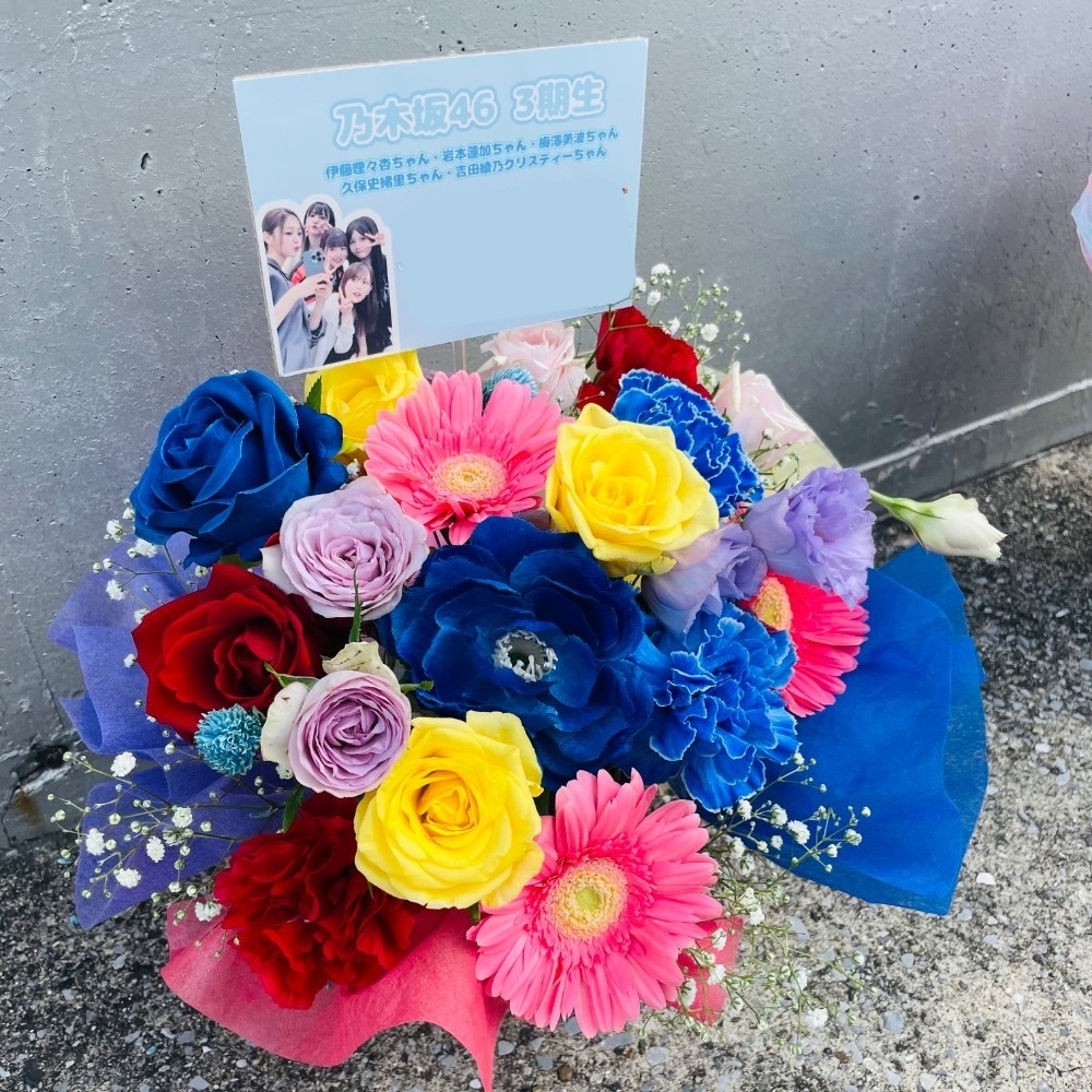 #-5,000円 #公演・出演祝い #フラワーデザイナー大川 #楽屋花 #推し花 #幕張メッセ #乃木坂46 #アイドル #リアルミート&グリート #オリジナル立て札 #カラフル