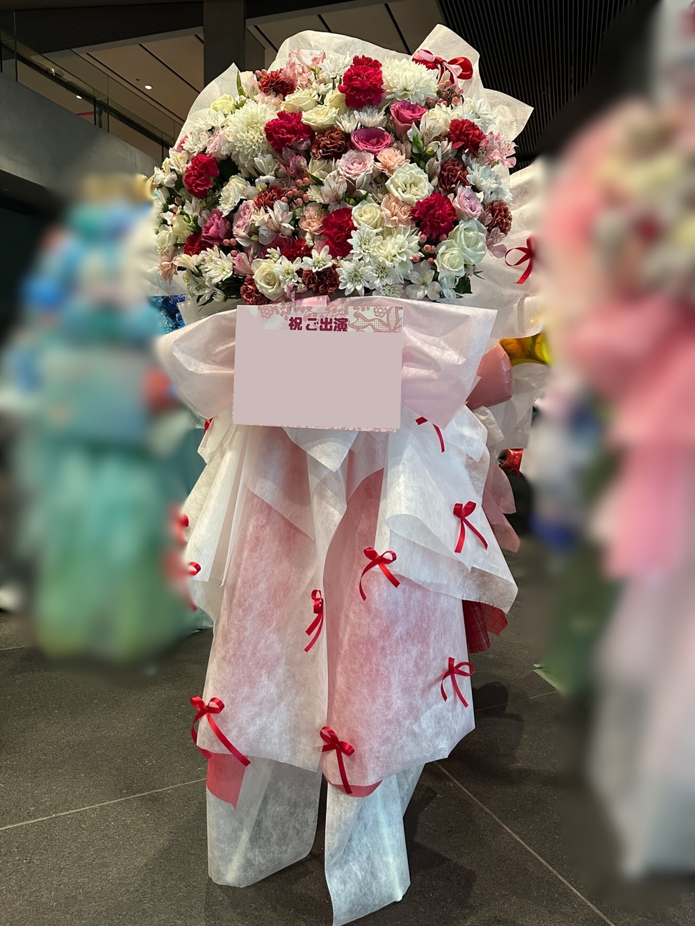 #35,000円-50,000円 #公演・出演祝い #フラワーデザイナー安井 #白 #スタンド花 #推し花 #オリジナル立て札 #花束風フラスタ #可愛い