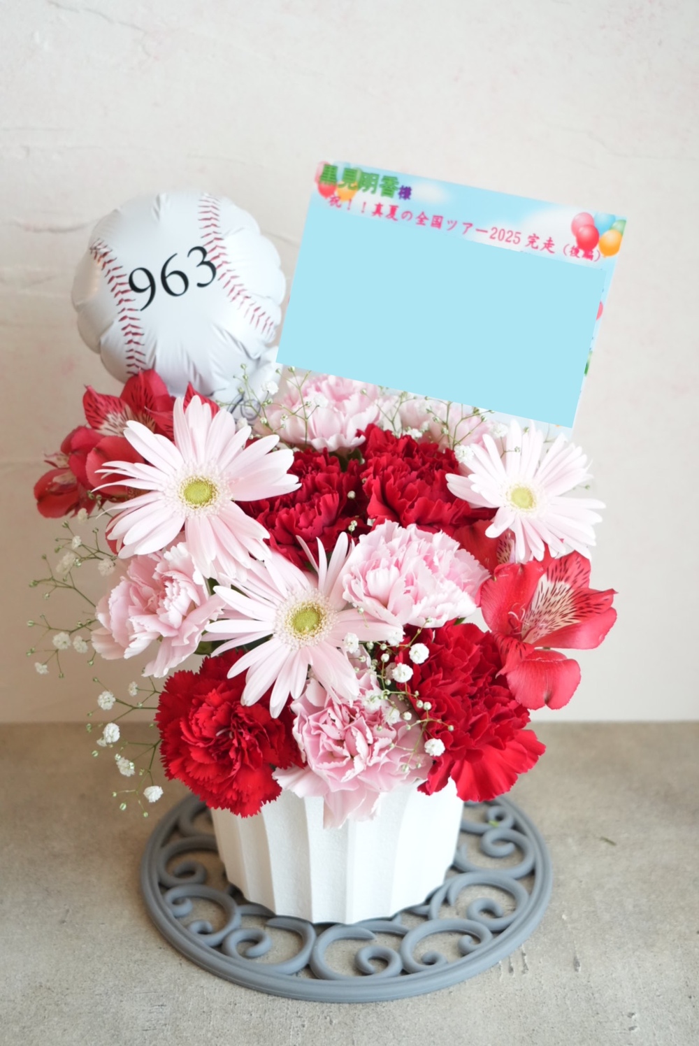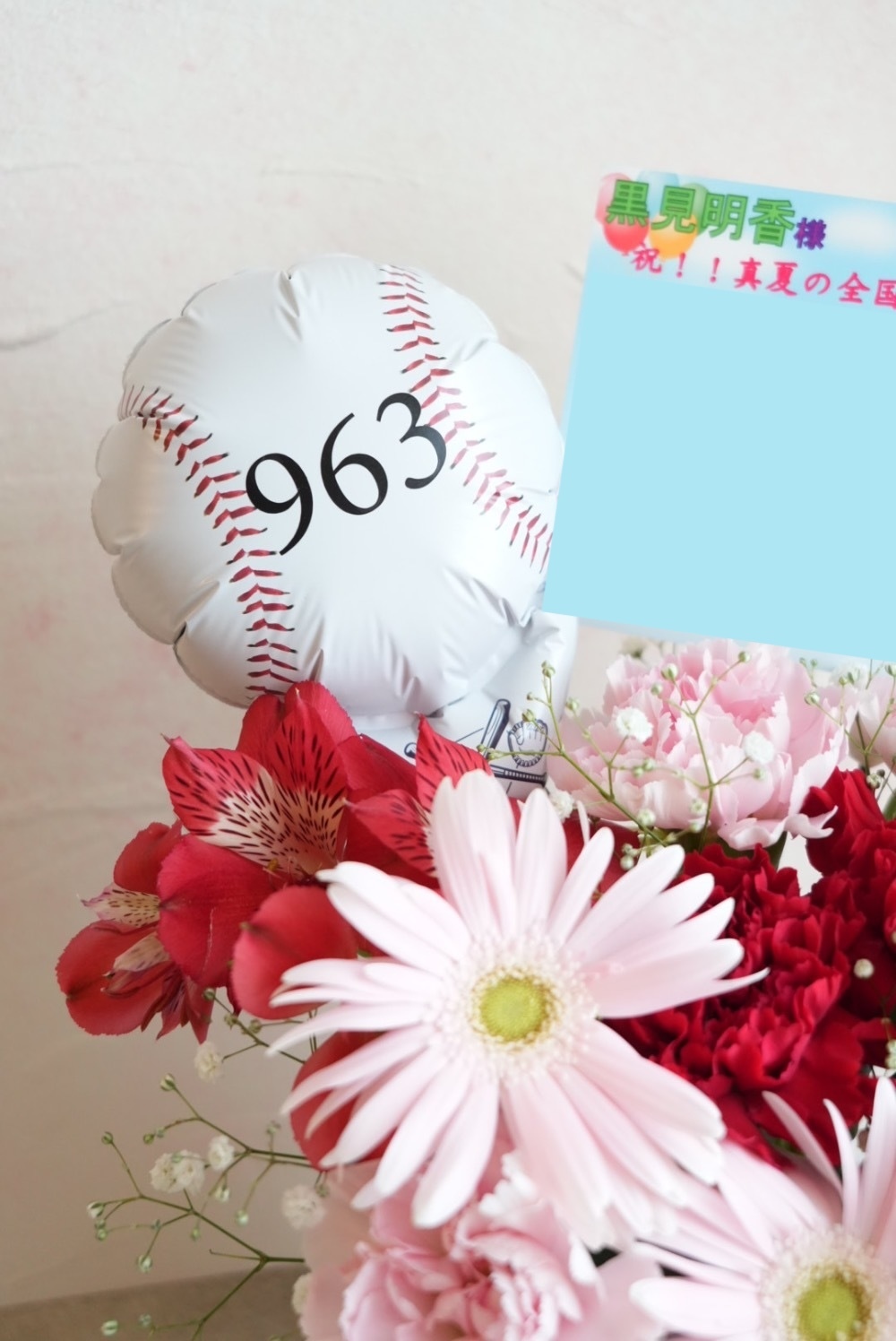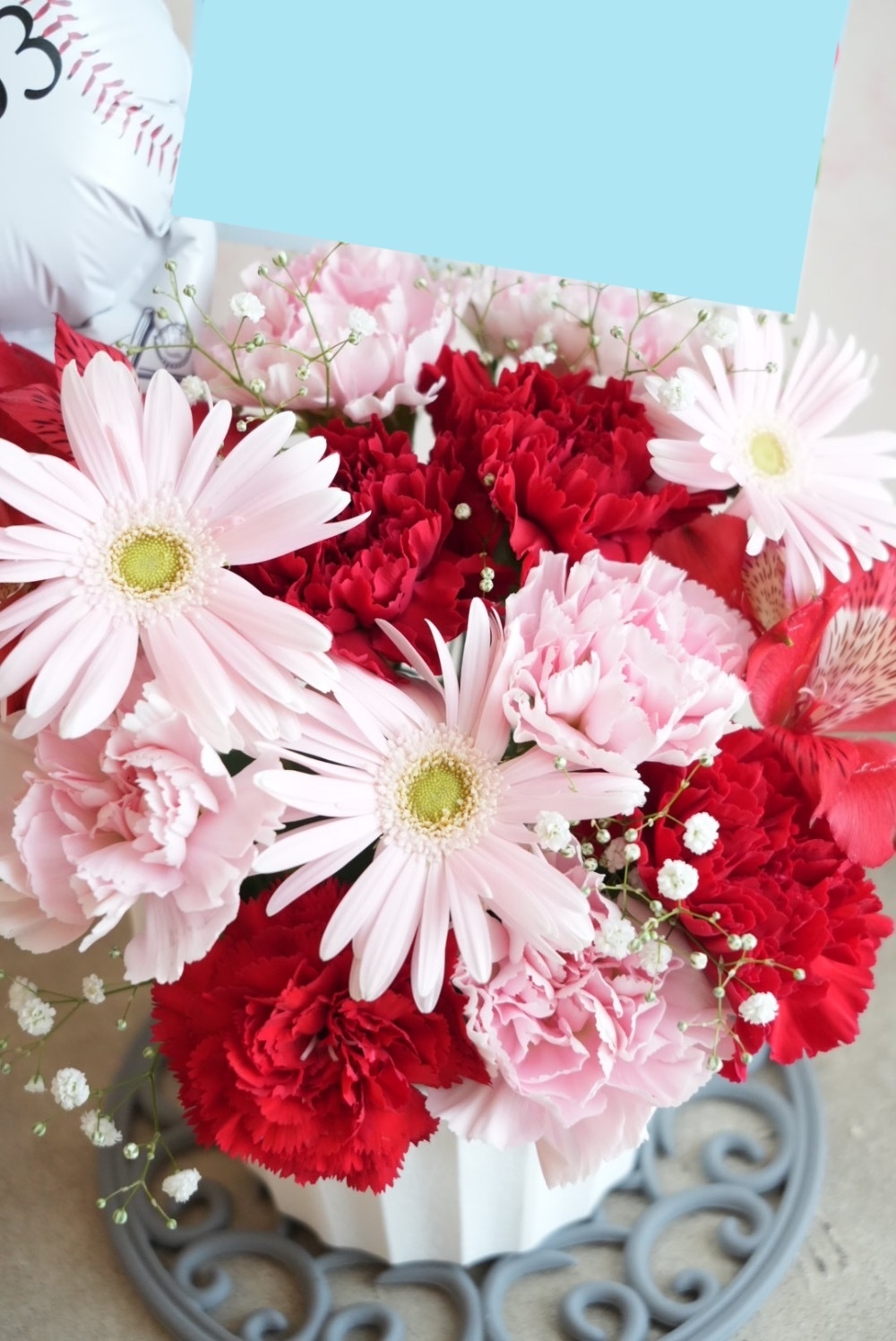 黒見明香さんの(私が思っている)イメージは、清楚で可愛いで、そのイメージから、「とっびきりかわいい」をテーマにピンク、赤系でのアレンジをオーダーしました。
