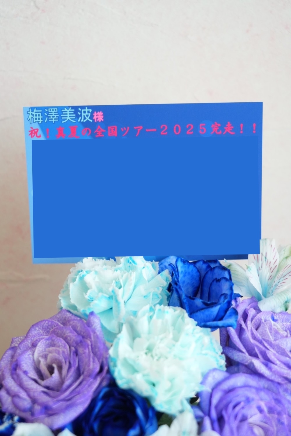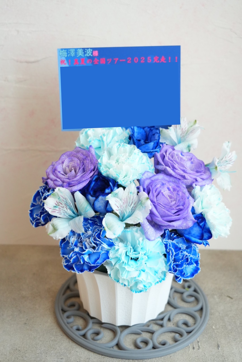 梅澤美波さんのサイリウムカラーであるブルー系をメインに、「最高にかっこいい」イメージのアレンジをオーダーしました。