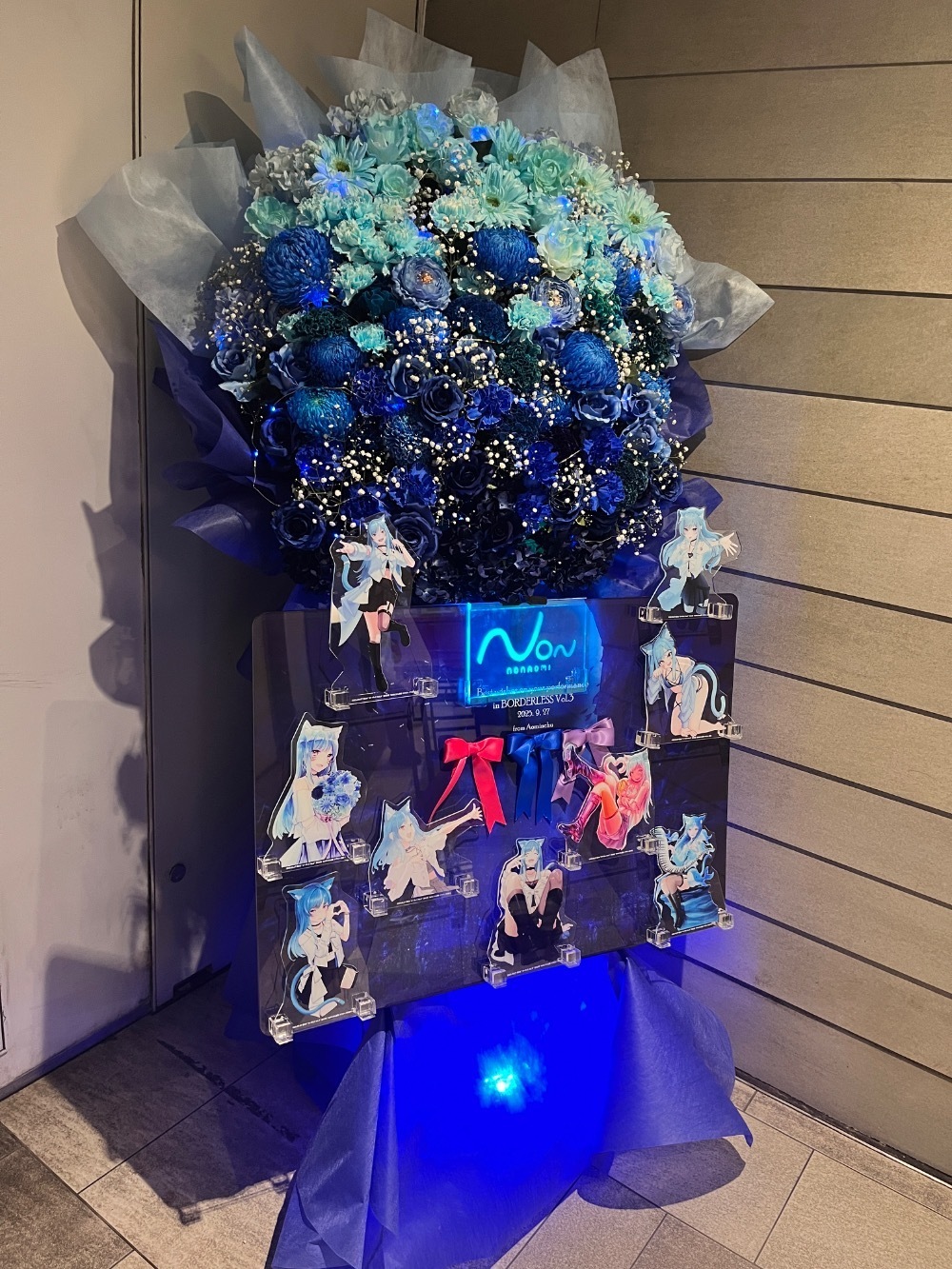 #71,048円 #公演・出演祝い #フラワーデザイナー宮崎 #ブルー #スタンド花 #推し花 #CHIC HALL SHIBUYA #藍海のん #Vtuber #オリジナル立て札 #パネル装飾 #電飾 #アクリルパネル #ボリューム