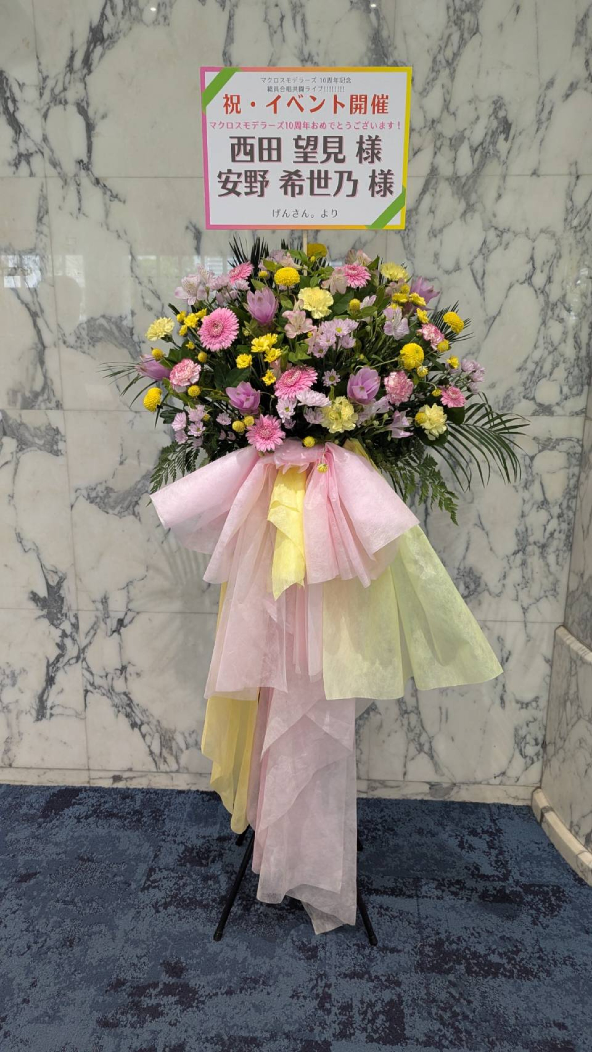 「マクロスモデラーズ」というプロジェクトの10周年イベントに出演されるお二人にお花を贈ることによって、少しでも華やかにイベントを盛り上げたいと思いました。
