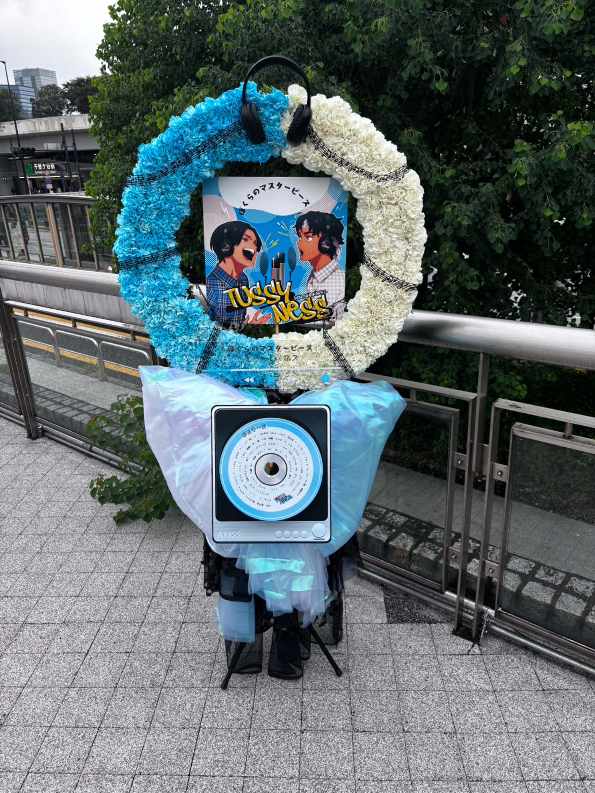 CDをコンセプトにしており、丸いリース型のお花にして頂きました。CD型のパネルを回転させる形で設置することが叶い、満足しています!