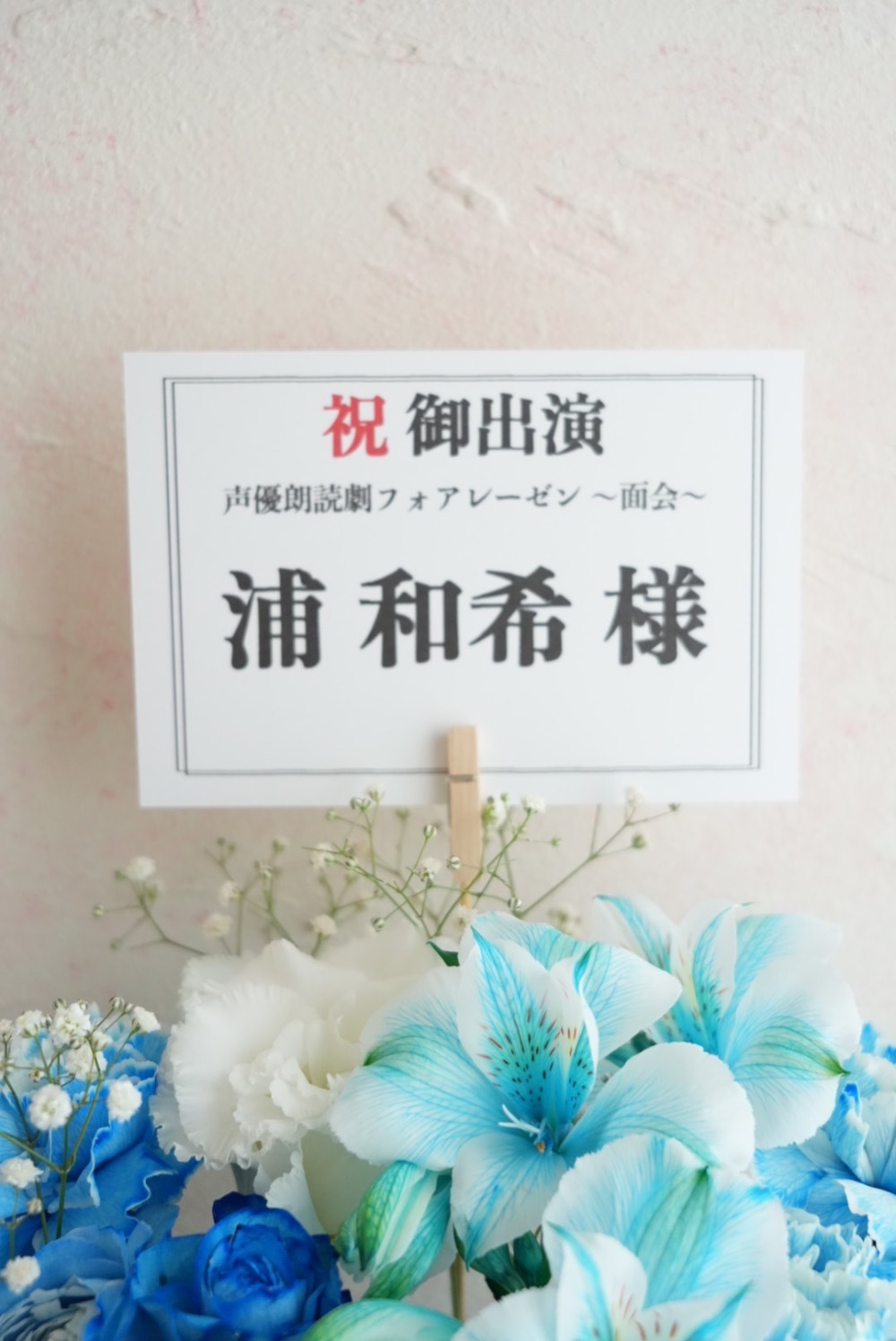 #15,000円 #公演・出演祝い #フラワーデザイナー成田 #水色 #楽屋花 #推し花 #横須賀芸術劇場 #浦和希 #声優 #フォアレーゼン