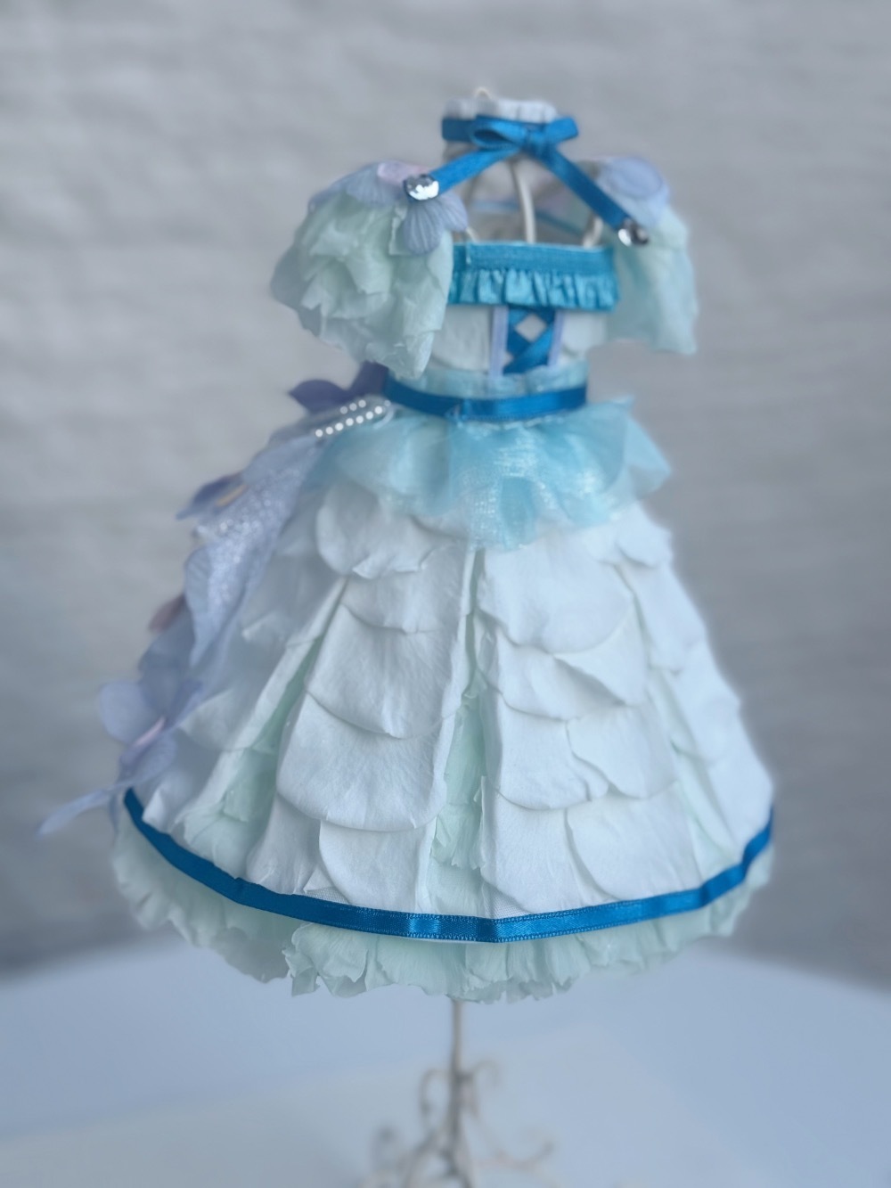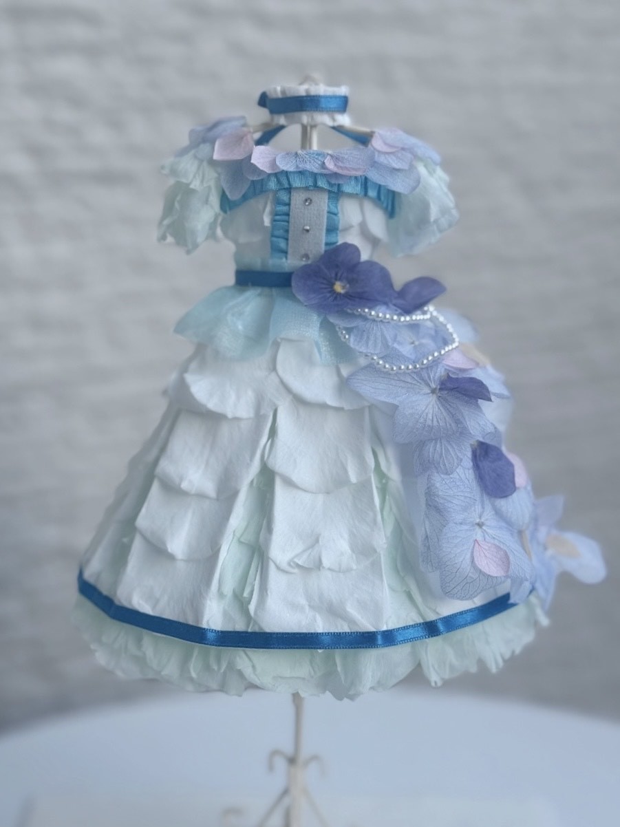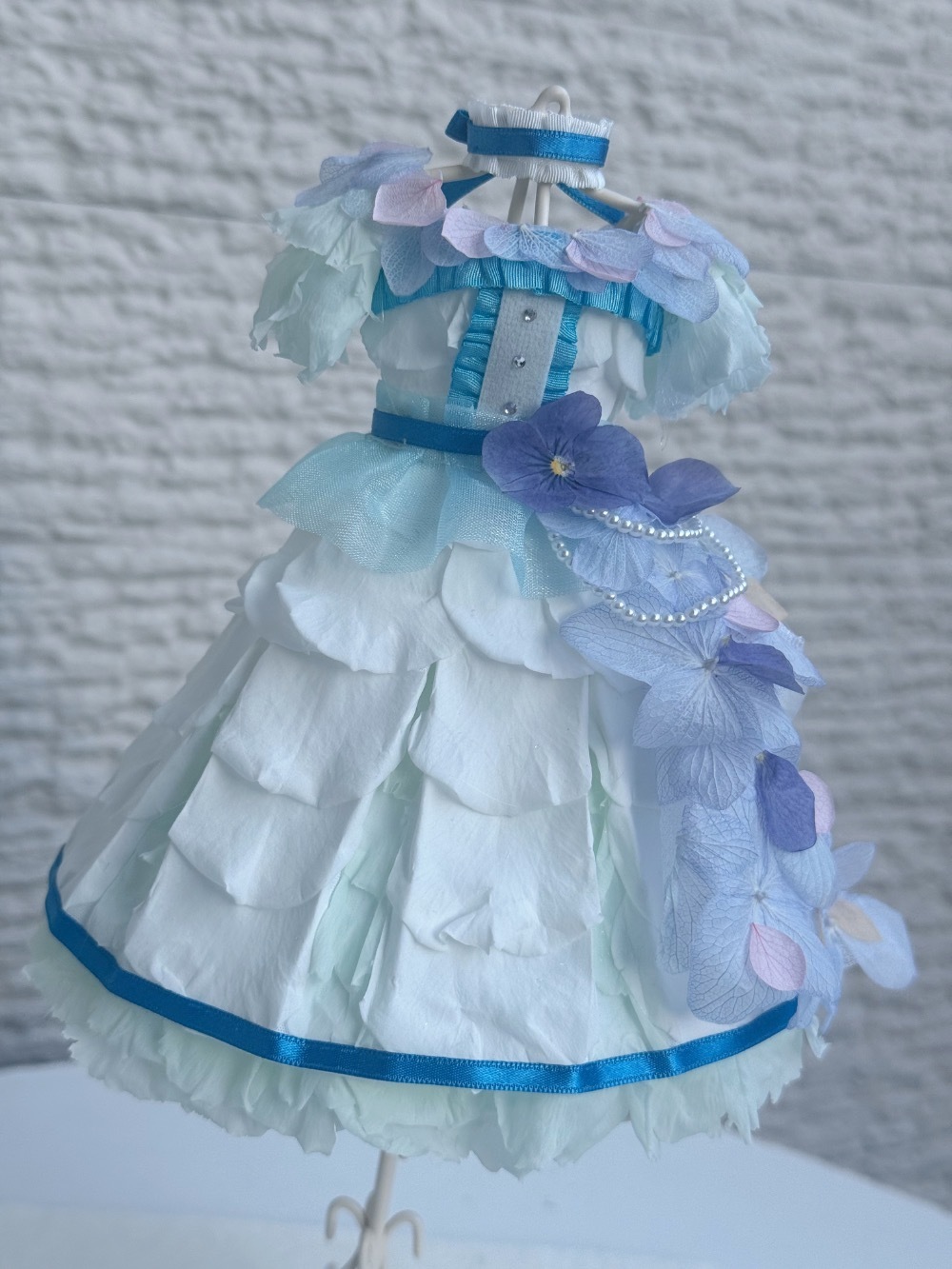 自分がこのキャラクターを好きになった切っ掛けの1つの衣装を、主演公演という大切な日に贈りたかったので、ミニフラワードレスを希望しました。