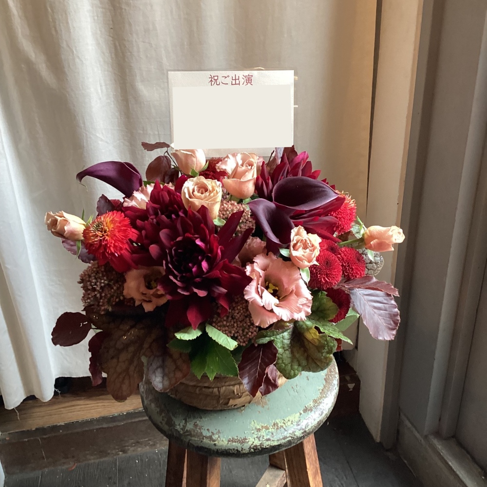 「お祝いと感謝の気持ちを込めて」秋を感じられるお花でおまとめしたご出演祝い花・楽屋花