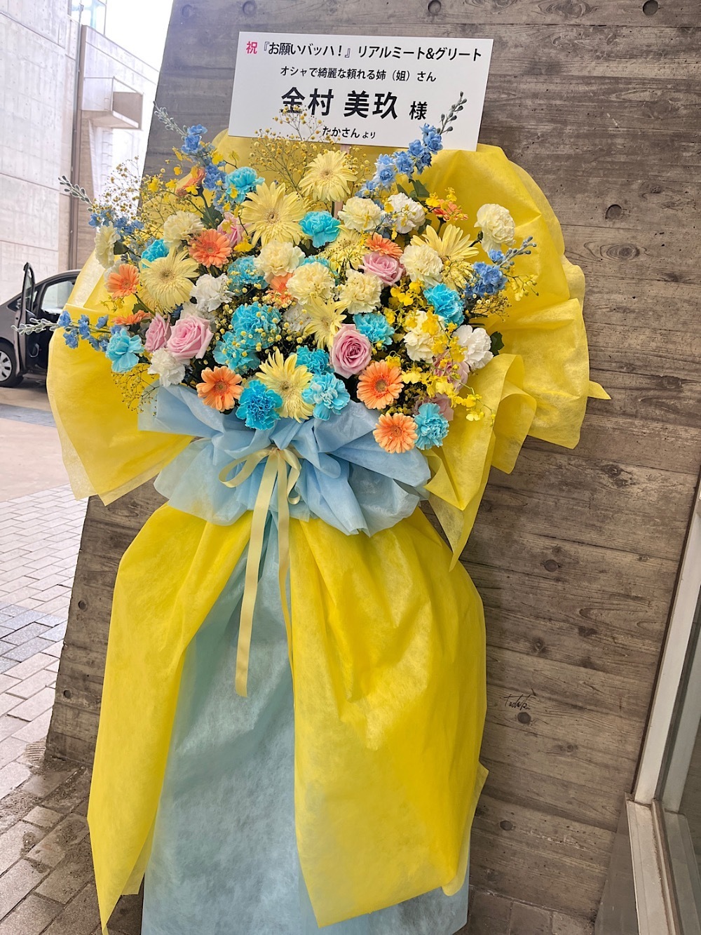 #35,000円-50,000円 #握手会・オンラインお話し会 #フラワーデザイナー宮崎 #ブルー #スタンド花 #推し花 #幕張メッセ #日向坂46 #アイドル #リアルミート&グリート #金村美玖 #リボン #カラフル