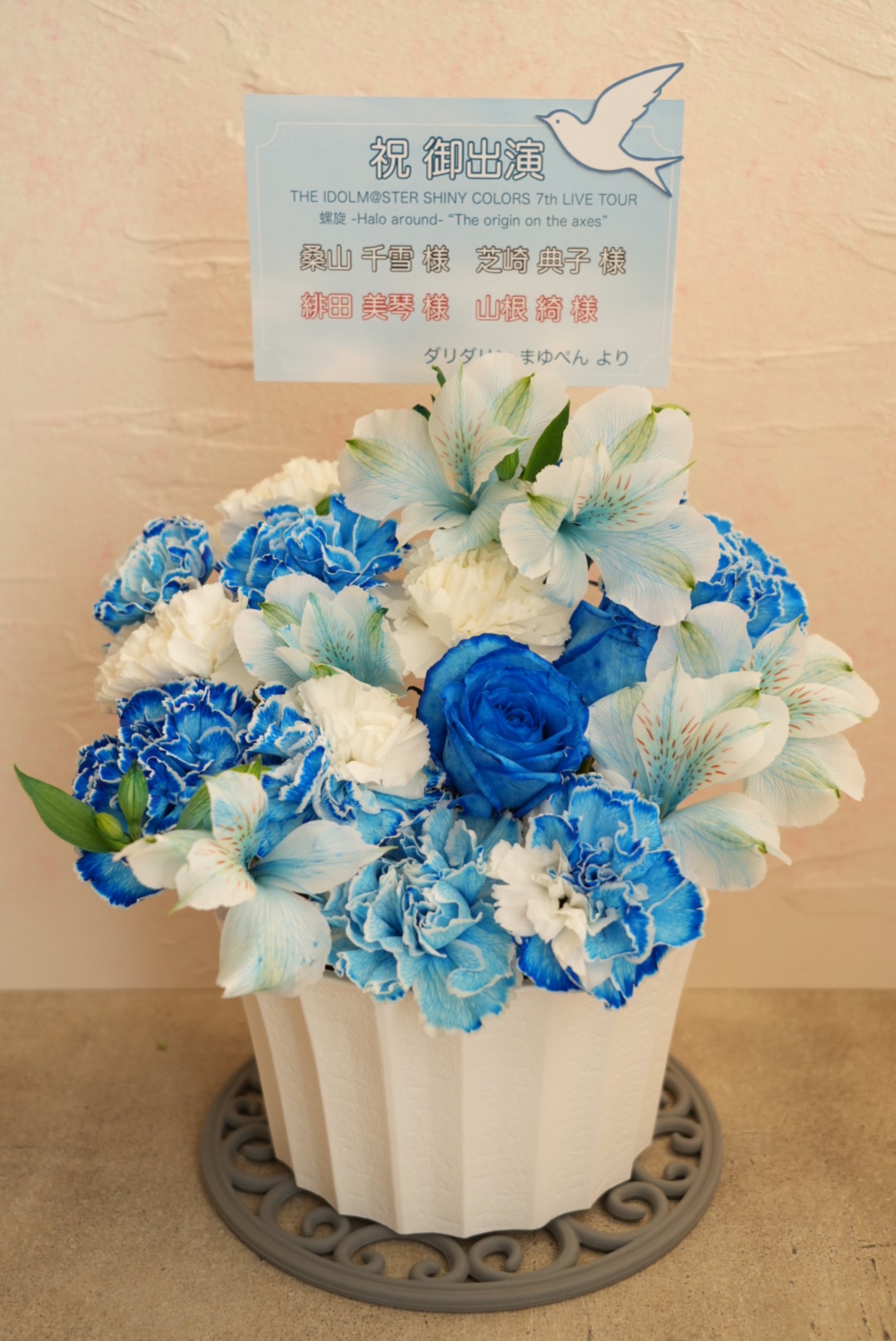 #6,000円-9,000円 #公演・出演祝い #フラワーデザイナー成田 #ブルー #楽屋花 #推し花 #Kアリーナ横浜 #アイマスシリーズ #アイドルマスターシャイニーカラーズ #オリジナル立て札 #桑山千雪 #芝崎典子 #緋田美琴 #山根綺 #声優