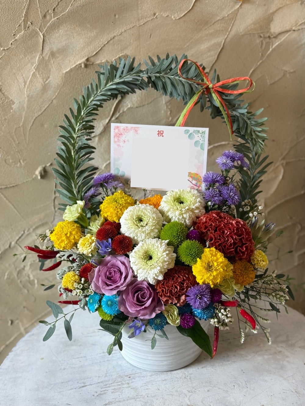 カラフルなお花で秋らしさを表現したご出演祝い花・楽屋花