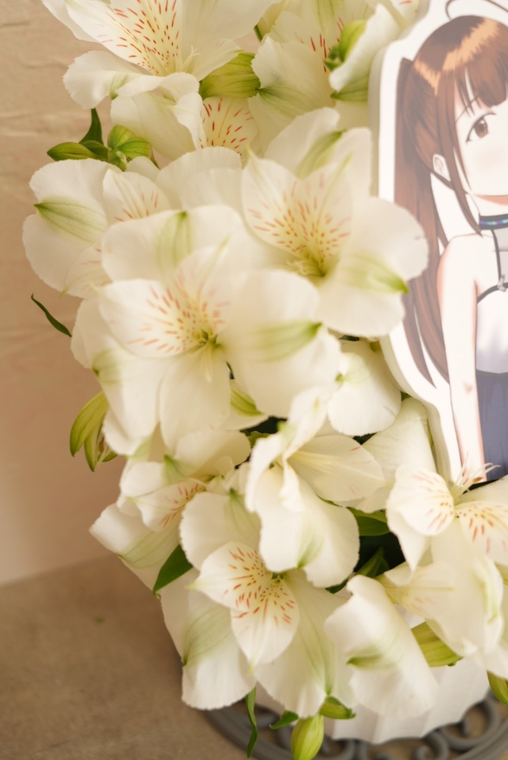 #16,000円 #公演・出演祝い #フラワーデザイナー成田 #白 #楽屋花 #推し花 #Kアリーナ横浜 #芝崎典子 #桑山千雪 #声優 #アイマスシリーズ #アイドルマスターシャイニーカラーズ #オリジナル立て札 #パネル装飾