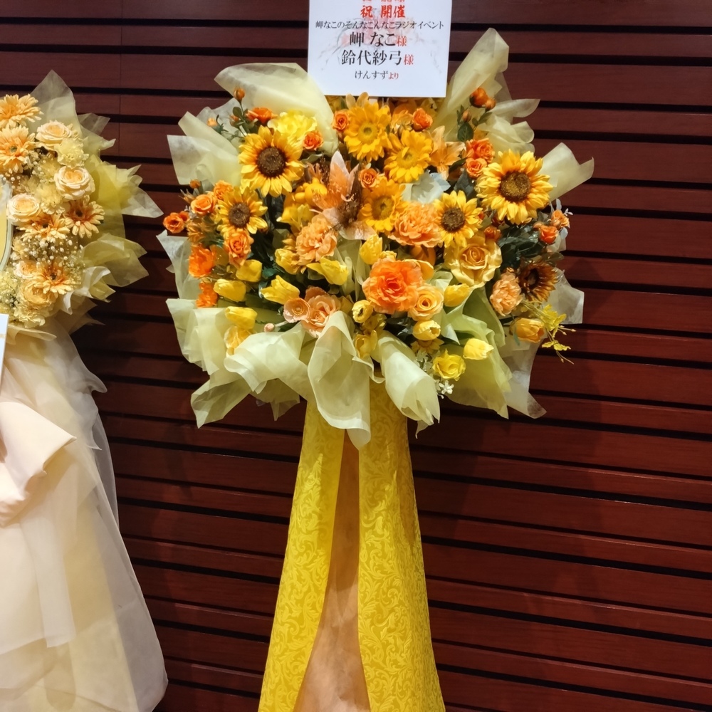 #18,000円 #公演・出演祝い #フラワーデザイナー立本 #黄 #スタンド花 #推し花 #時事通信ホール #岬なこ #声優 #鈴代紗弓 #ラジオ番組 #花束風フラスタ