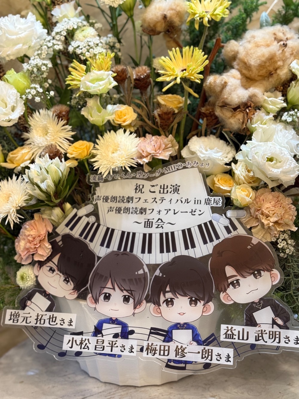 リナシティかのや 公演 [声優朗読劇フォアレーゼン] 増元拓也様 小松昌平様 梅田修一朗様 益山武明様 ご出演祝い花・楽屋花