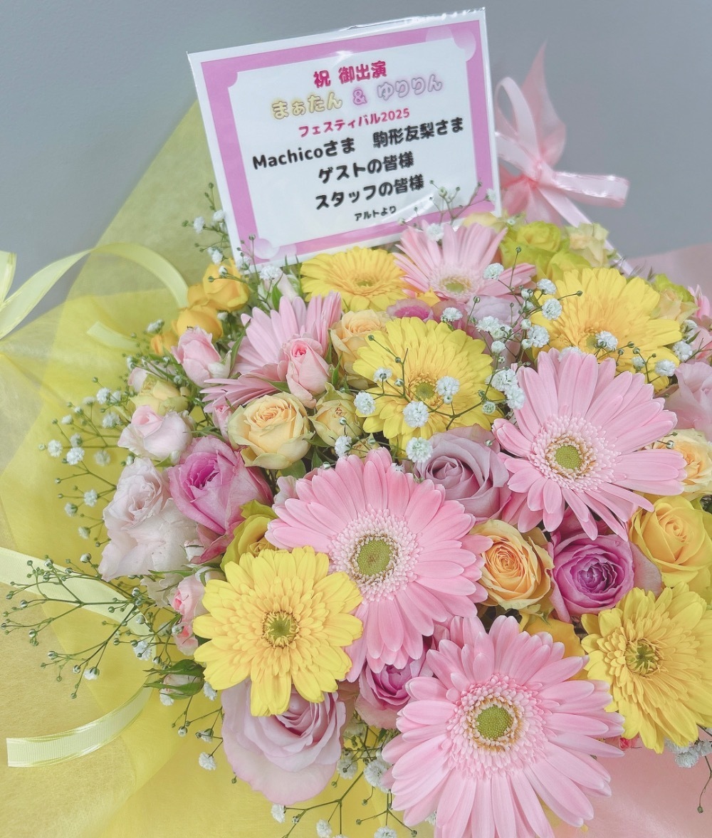 ニッショーホール 公演 [まぁたんゆりりんフェスティバル2025] Machicoさま、駒形友梨さま、ゲストの皆様、スタッフの皆様 ご出演祝い花・楽屋花