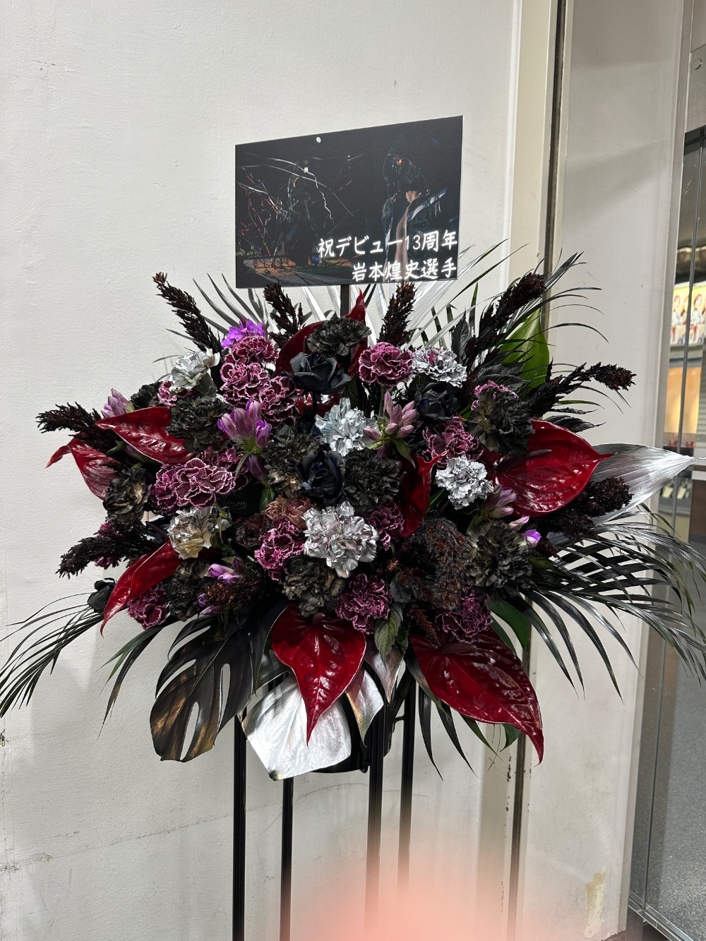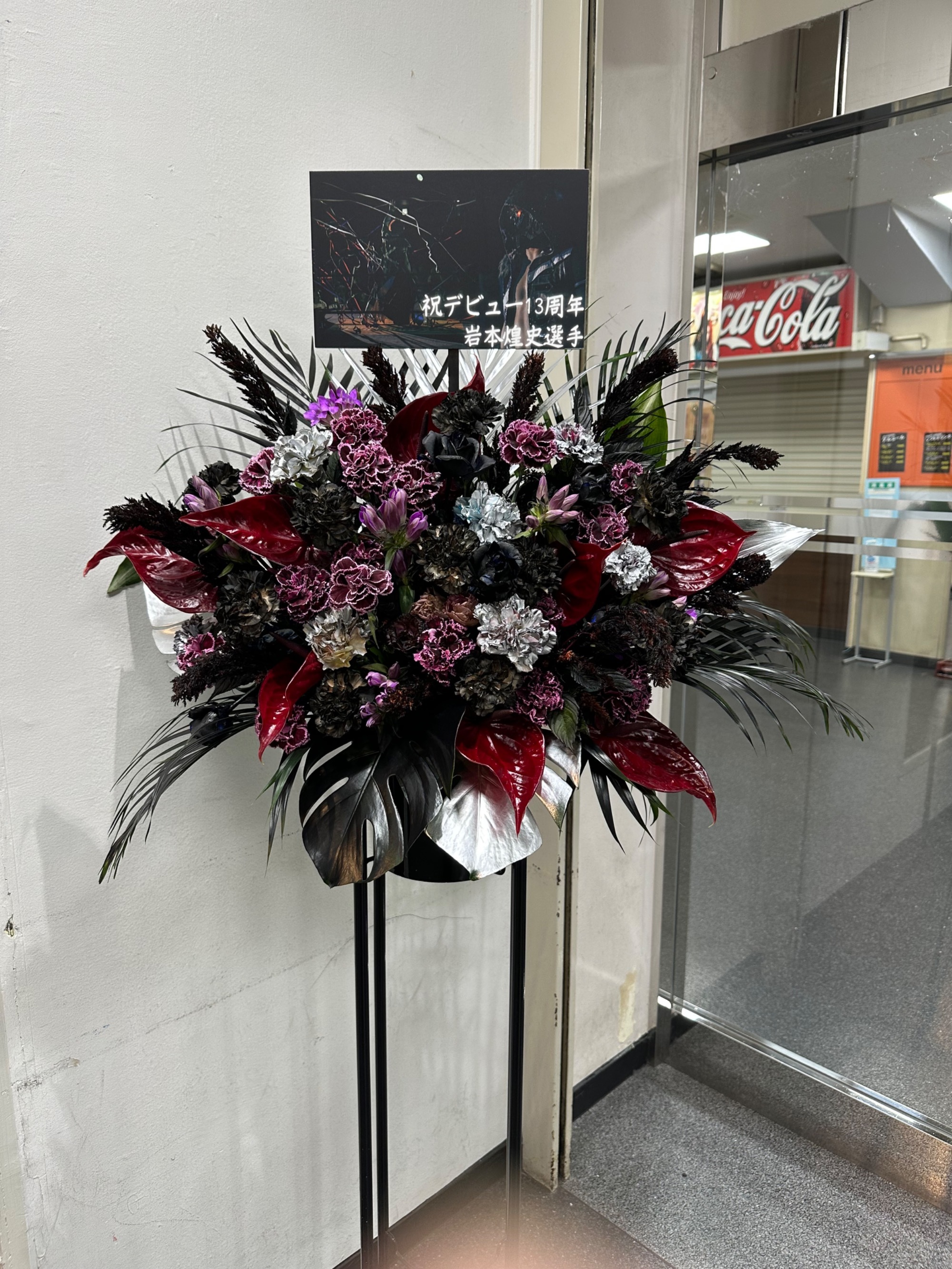 #20,000円-30,000円 #公演・出演祝い #フラワーデザイナー安井 #紫 #スタンド花 #推し花 #後楽園ホール #岩本煌史 #プロレス #オリジナル立て札 #シック
