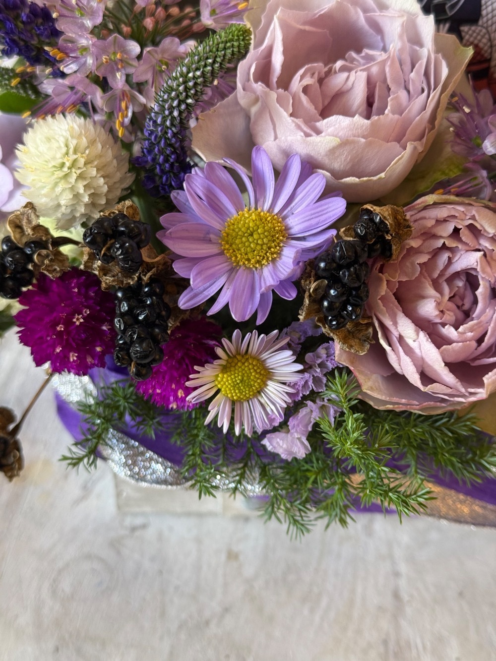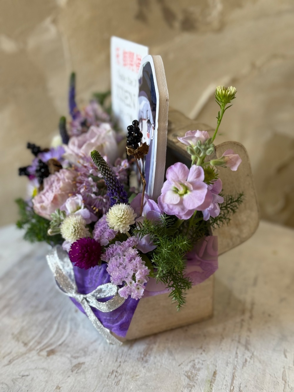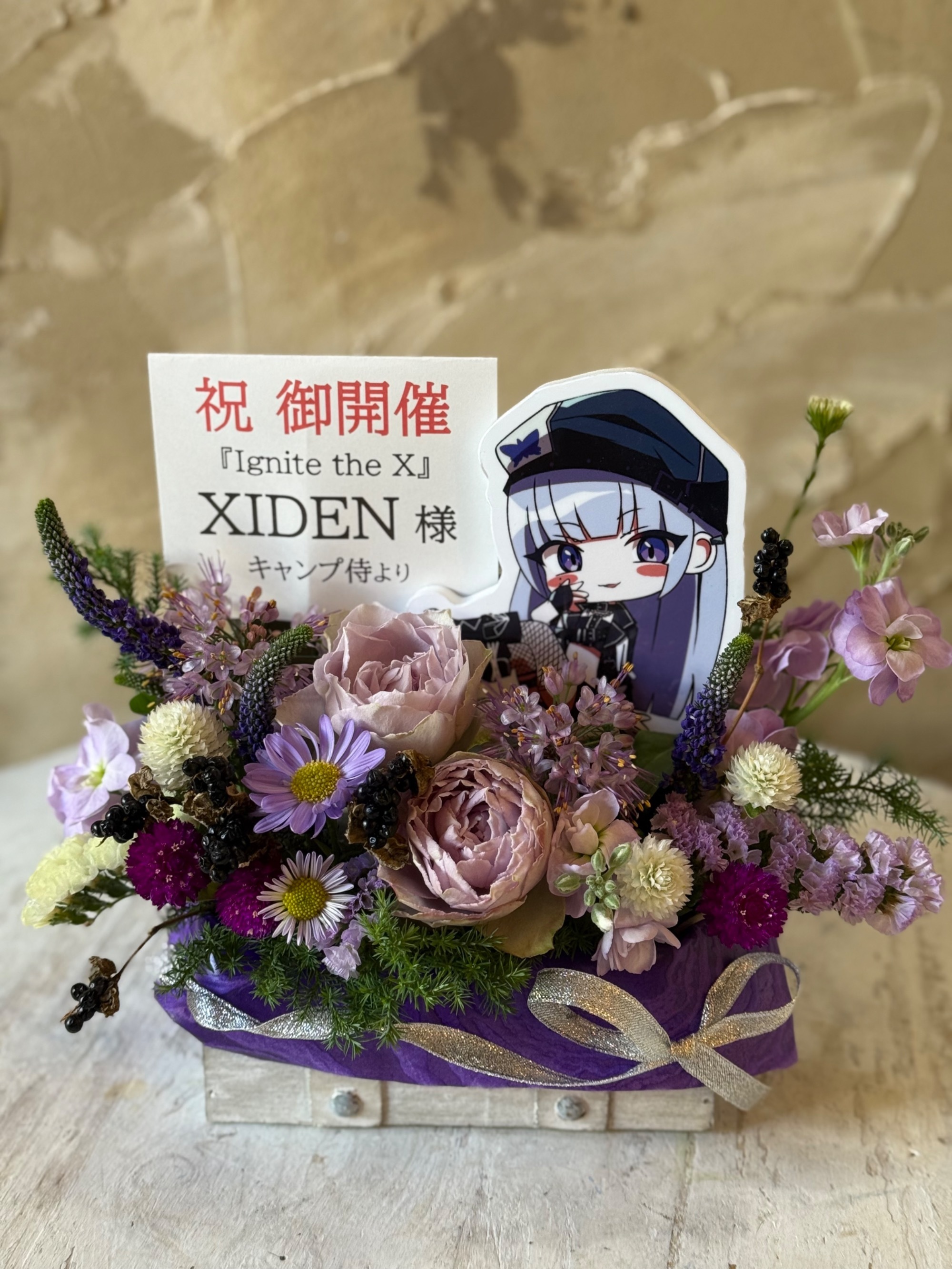 #6,000円-9,000円 #公演・出演祝い #フラワーデザイナー牧 #紫 #楽屋花 #推し花 #秋葉原エンタス #XIDEN #パネル装飾 #トレジャーボックス #リボン