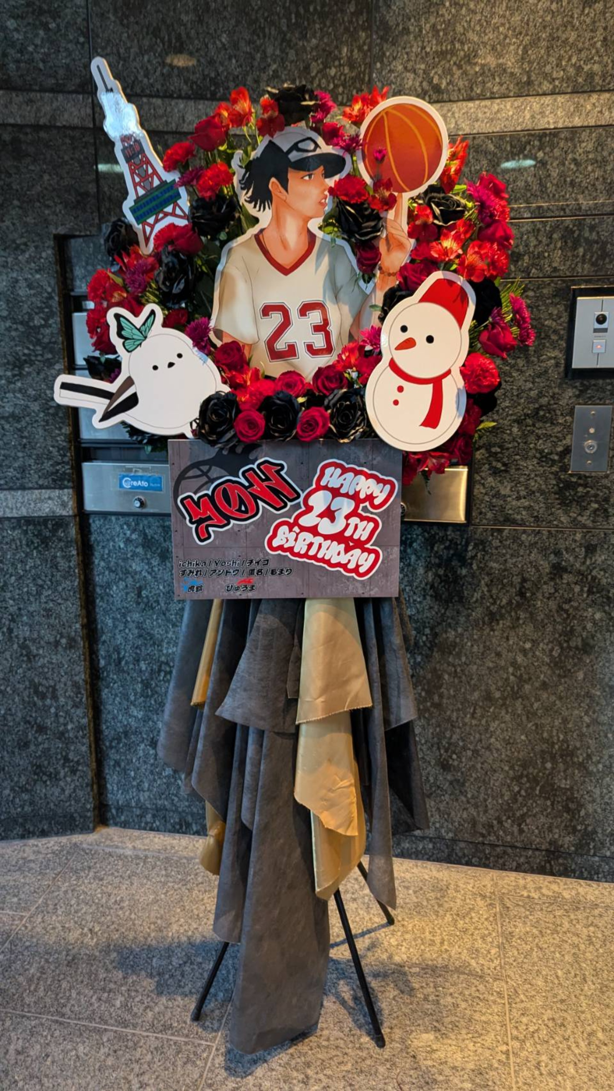 #35,000円-50,000円 #生誕イベント・推しの誕生日 #フラワーデザイナー金巻 #赤 #スタンド花 #推し花 #恵比寿CreAto #RAJ GLANZ YOH #オリジナル立て札 #パネル装飾