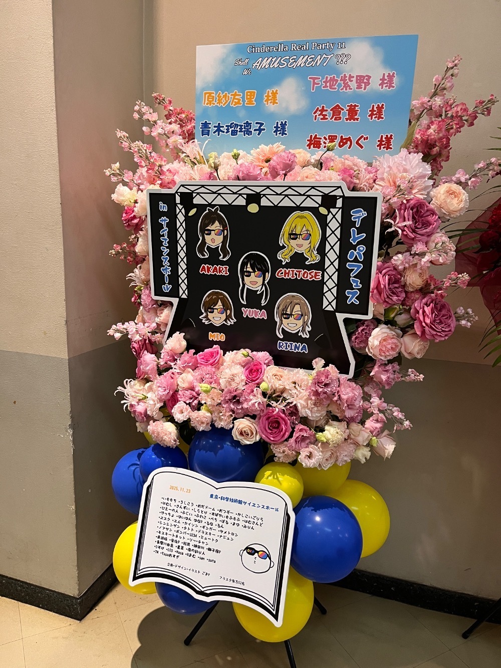 科学技術館サイエンスホール 公演 [CINDERELLA REAL PARTY! 11 shall We AMUSEMENT???] 原紗友里様・青木瑠璃子様・下地紫野様・佐倉薫様・梅澤めぐ様 ご出演スタンド花