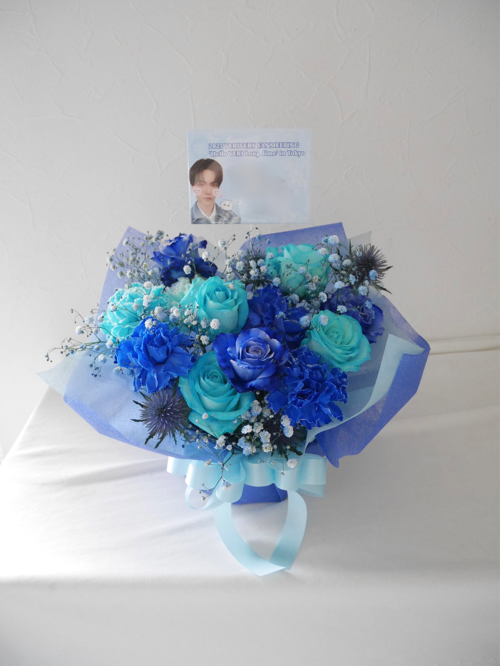 #6,000円-9,000円 #公演・出演祝い #フラワーデザイナー岡崎 #水色 #楽屋花 #推し花 #J:COMホール八王子 #GYEHYEON #オリジナル立て札 #リボン