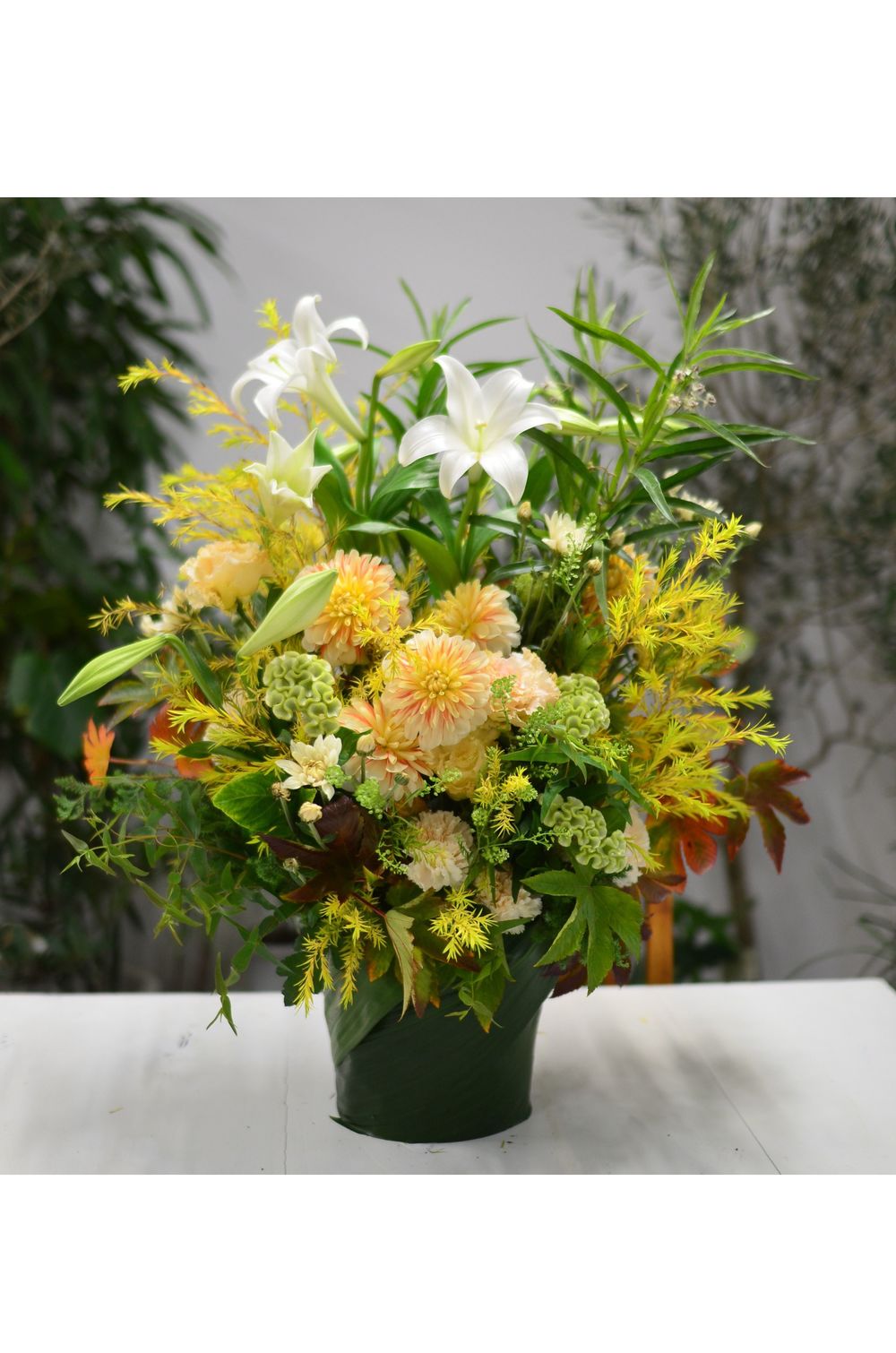 高さを出して華やかさをだします。色合いはオーダー時にお申しつけください。