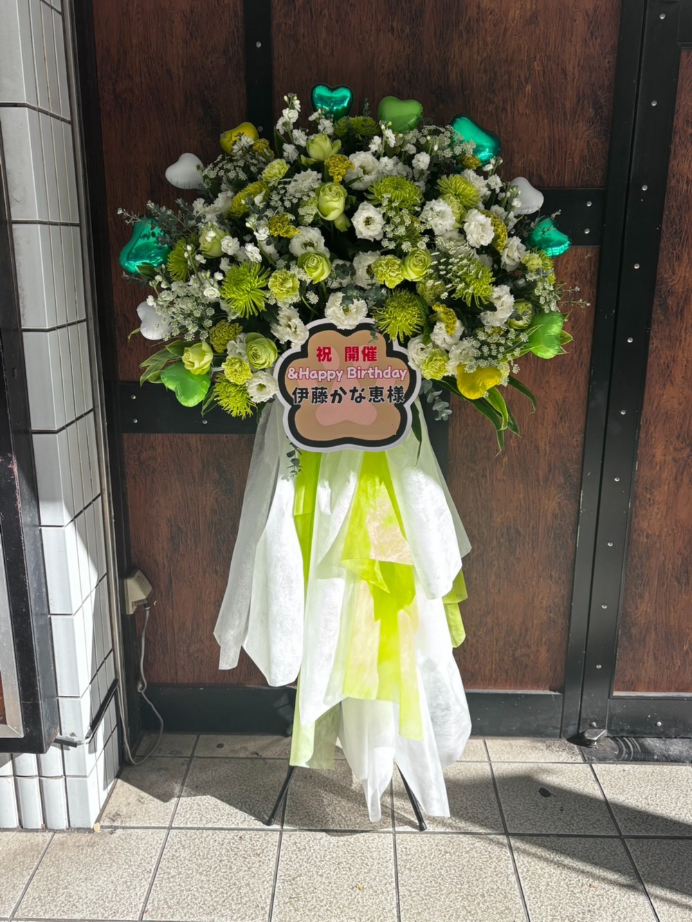 #58,000円 #生誕イベント・推しの誕生日 #フラワーデザイナー金巻 #グリーン #スタンド花 #推し花 #新横浜strage #伊藤かな恵 #歌手 #声優 #オリジナル立て札 #バルーン #ボリューム