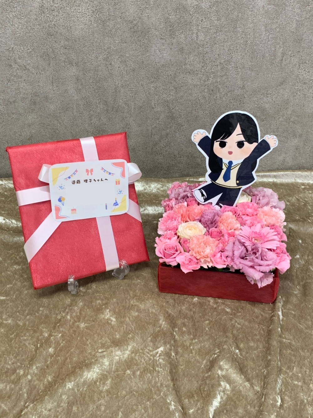 #17,000円 #握手会・オンラインお話し会 #フラワーデザイナー金巻 #ピンク #楽屋花 #推し花 #幕張メッセ #遠藤理子 #櫻坂46 #アイドル #リアルミート&グリート #オリジナル立て札 #パネル装飾 #ボックスフラワー