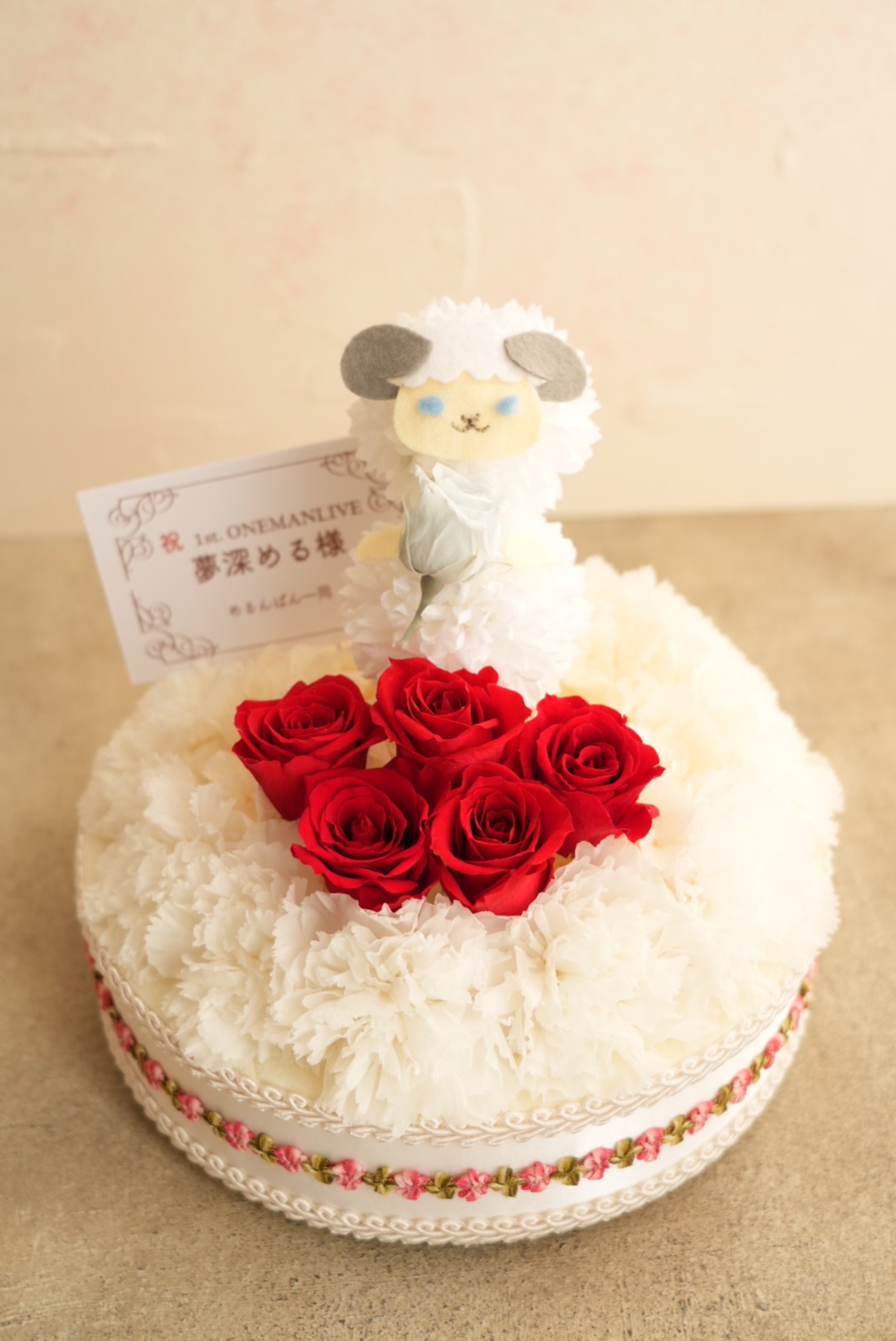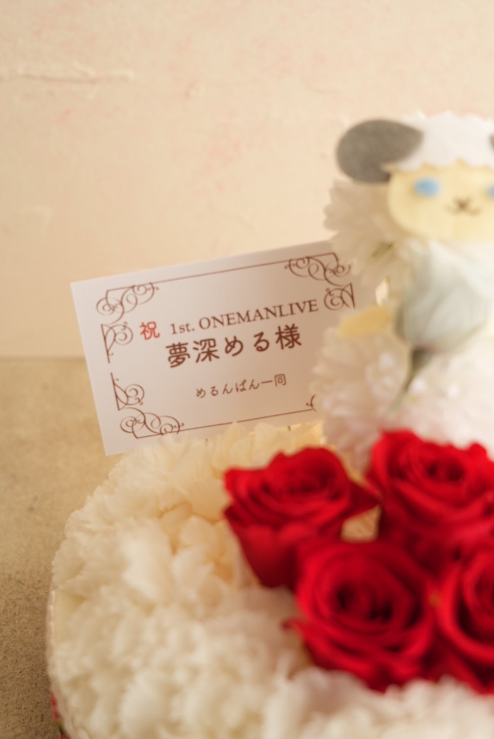 初のワンマンライブ&お誕生月だったのでバースデーケーキの形にマスコットキャラクターをデコレーション人形に見立てて制作して頂きました。