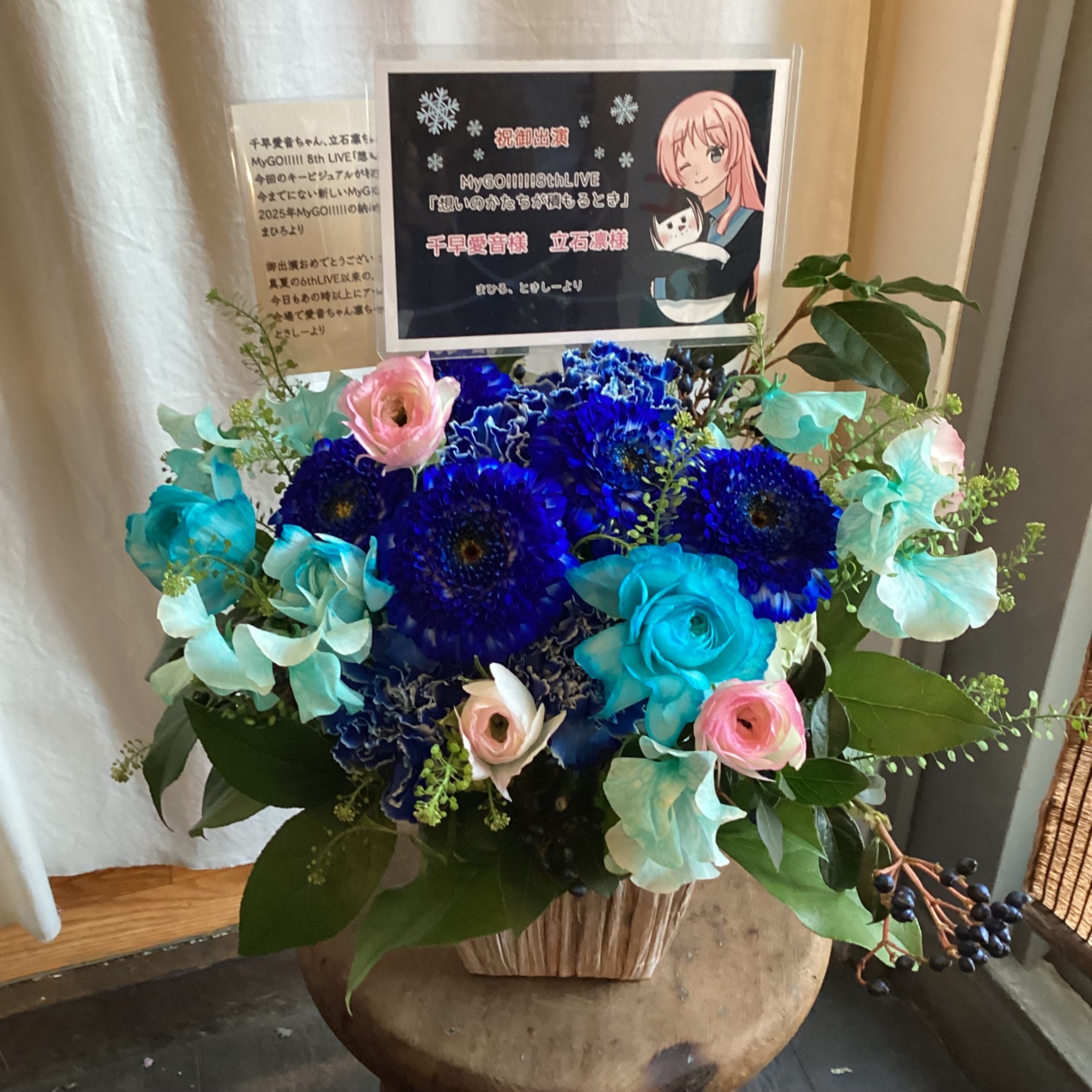 #-5,000円 #公演・出演祝い #フラワーデザイナー近藤 #ブルー #楽屋花 #推し花 #京王アリーナ #千早愛音 #立石凛 #MyGO!!!!! #声優 #オリジナル立て札