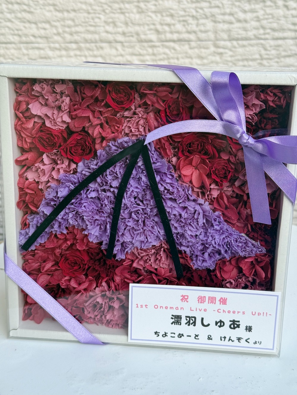 #10,000円 #公演・出演祝い #フラワーデザイナー金増 #紫 #プリザーブドフラワー #楽屋花 #推し花 #LIVE SPACE Q #濡羽しゅあ #Vtuber #ボックスフラワー #リボン
