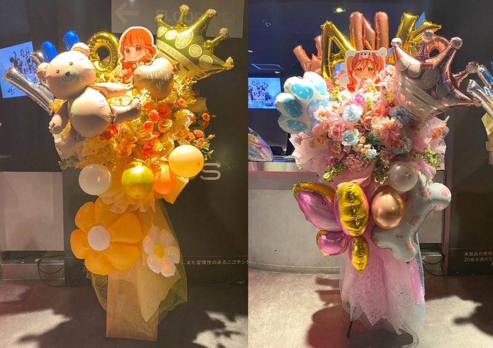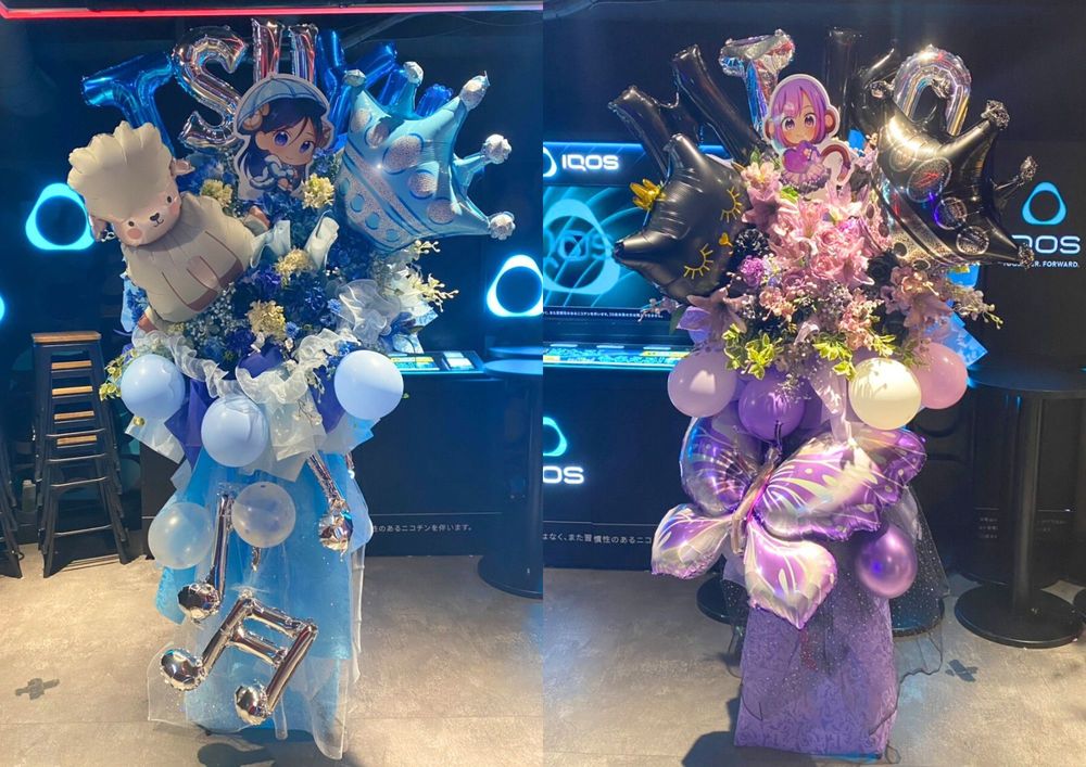 メンバーカラーを意識して形を統一させながら一体感をもったフラスタたいと思いました。