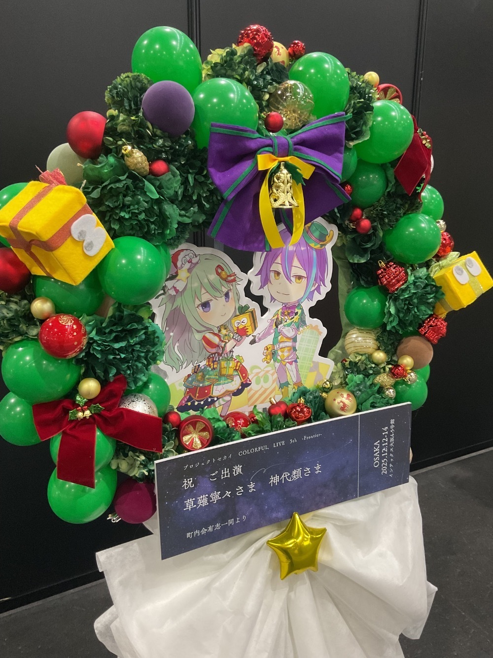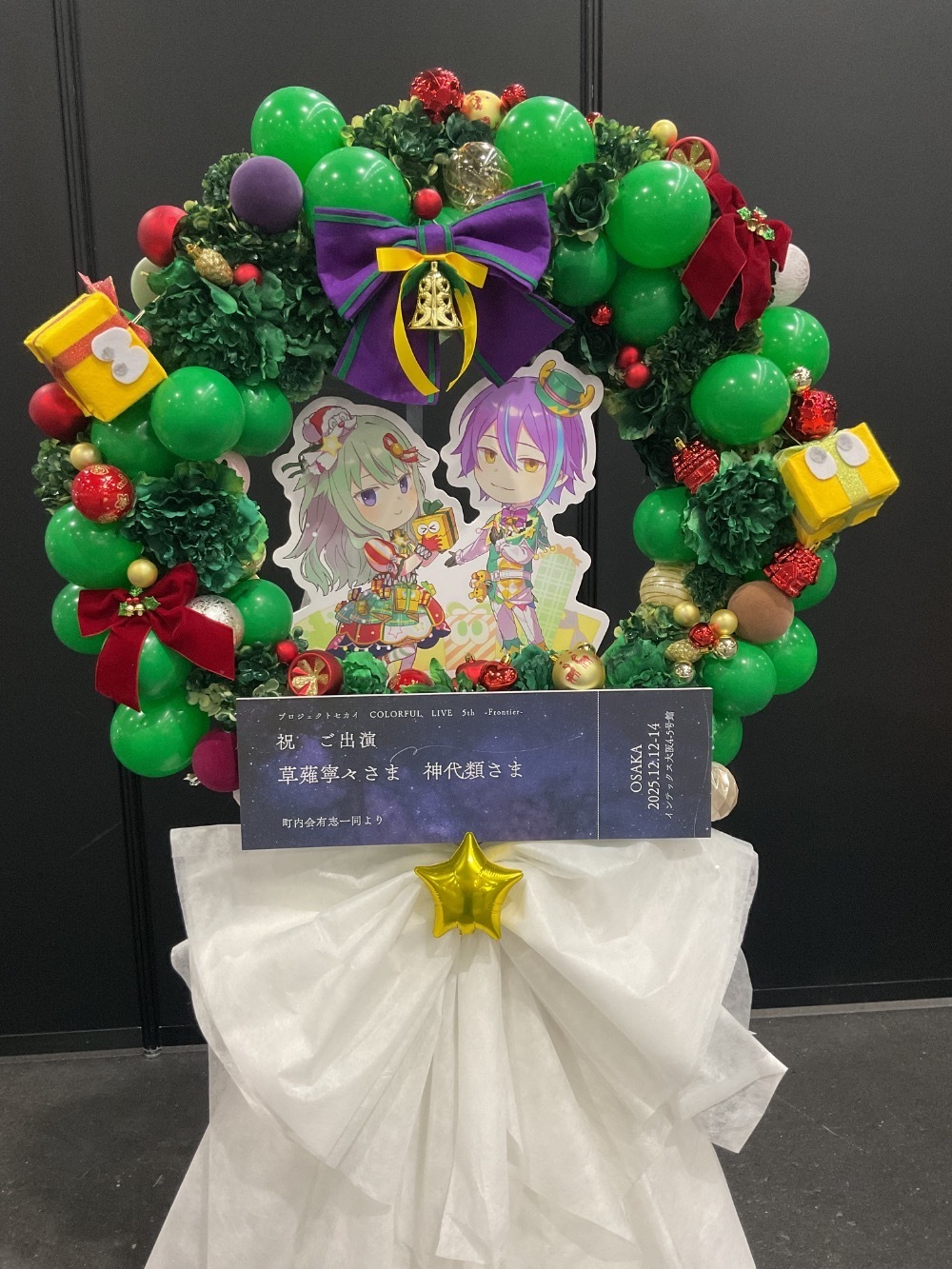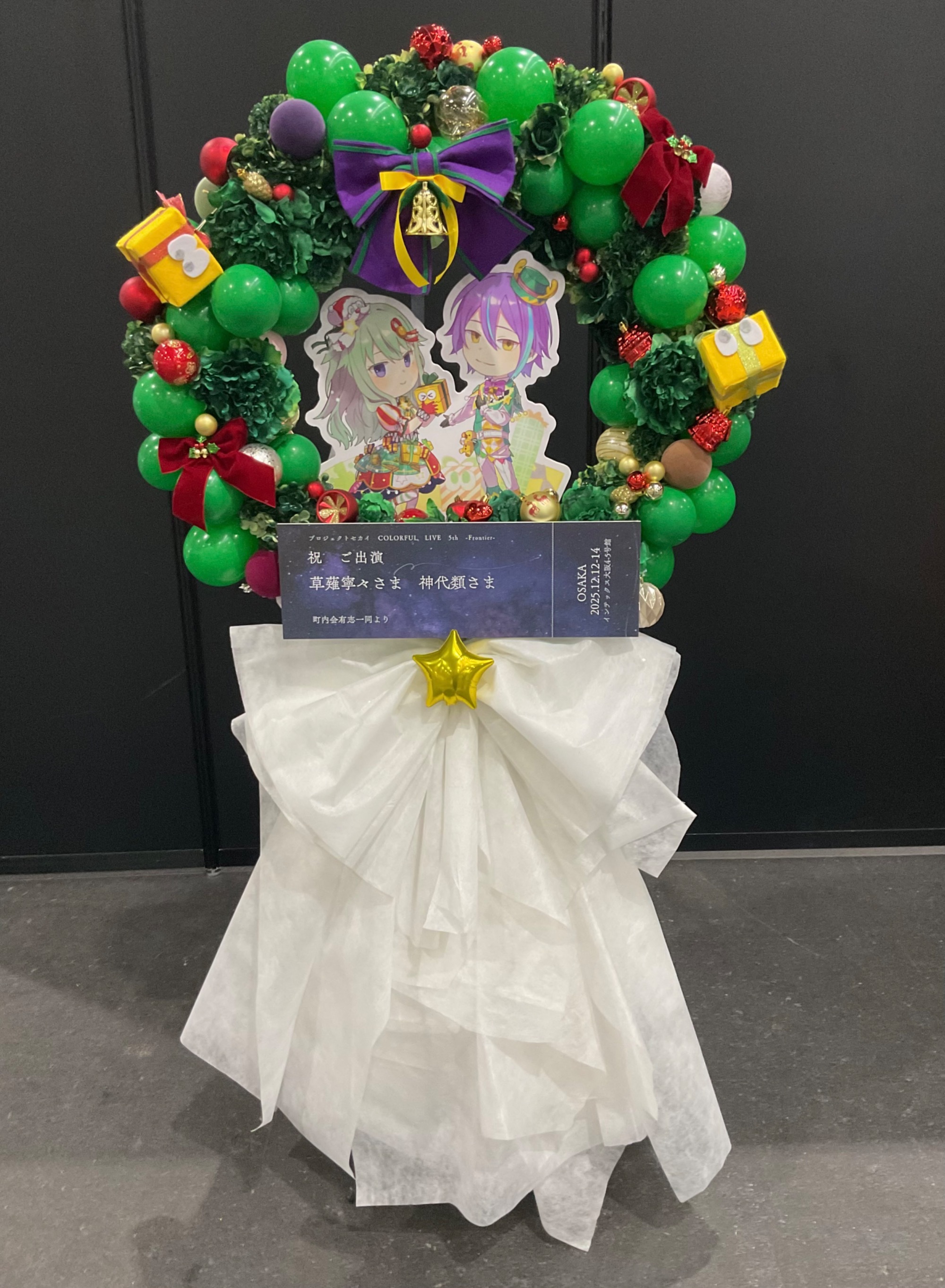 #55,000円 #公演・出演祝い #フラワーデザイナー杉浦 #グリーン #スタンド花 #推し花 #インテックス大阪 #草薙寧々 #神代類 #プロジェクトセカイ #オリジナル立て札 #アーチ #バルーン #クリスマス #パネル装飾