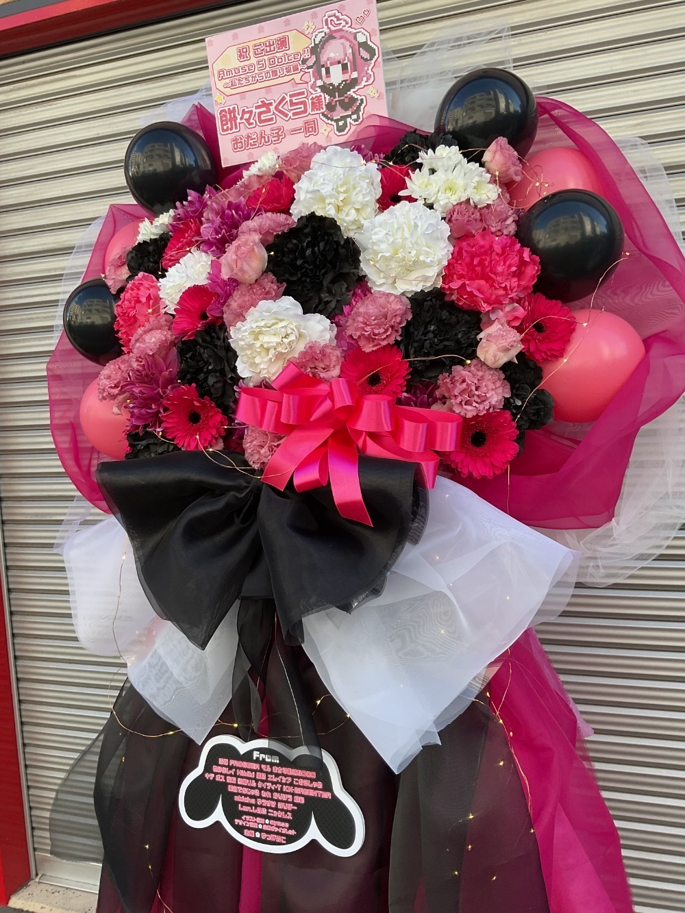 #126,182円 #公演・出演祝い #フラワーデザイナー杉浦 #ピンク #スタンド花 #推し花 #TEMPO HARBOR THEATER #餅々さくら #Vtuber #オリジナル立て札 #バルーン #リボン #ボリューム #電飾