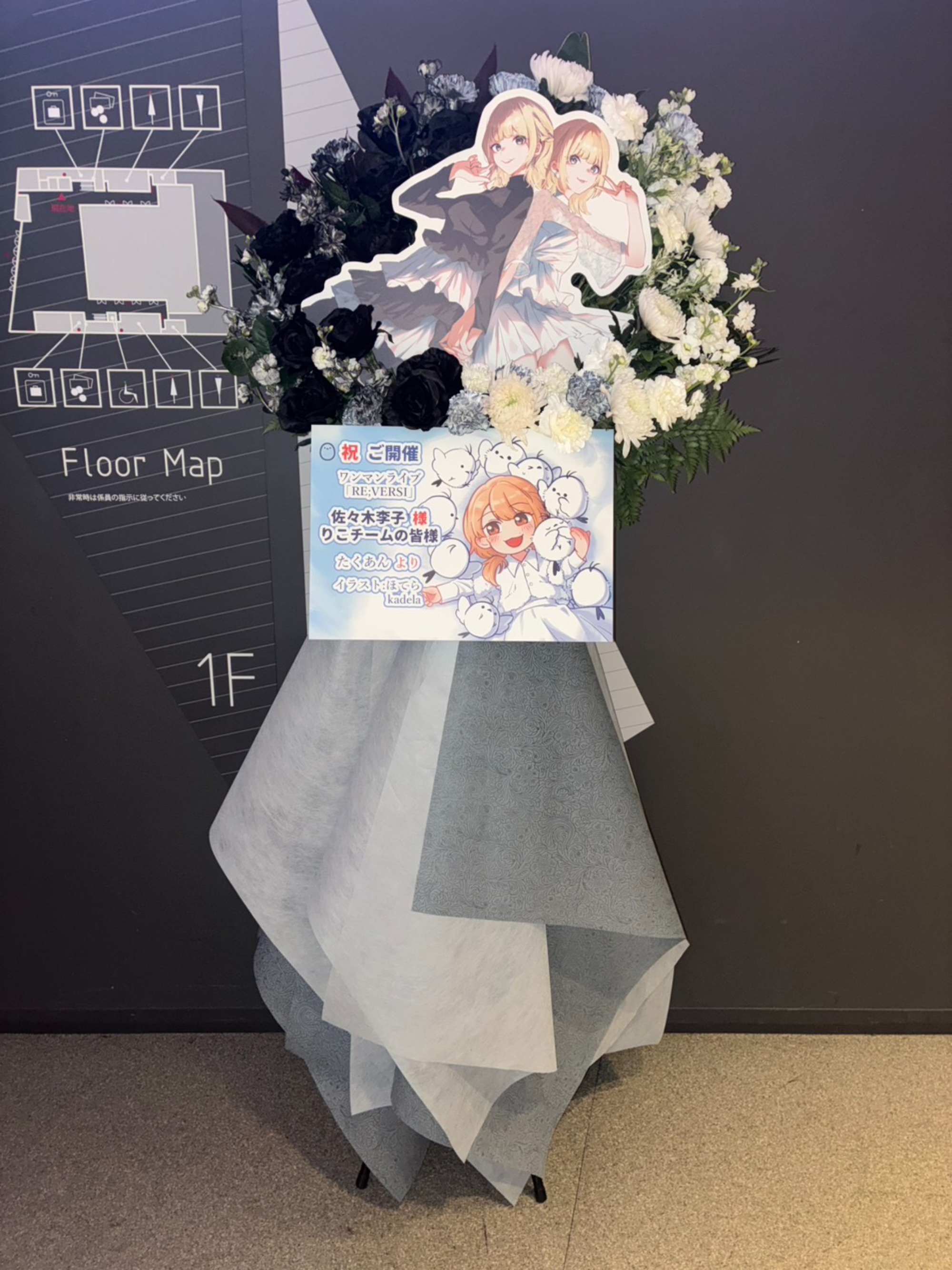 #35,000円-50,000円 #公演・出演祝い #フラワーデザイナー金巻 #黒 #スタンド花 #推し花 #Zepp横浜 #佐々木李子 #声優 #歌手 #オリジナル立て札 #パネル装飾 #ツートンカラー
