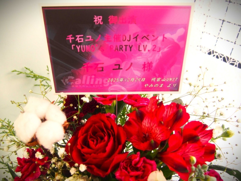 代官山UNIT 公演 [千石ユノ主催DJイベント「YUNO’s PARTY Lv.2」] 千石ユノ様 ご出演祝い花・楽屋花