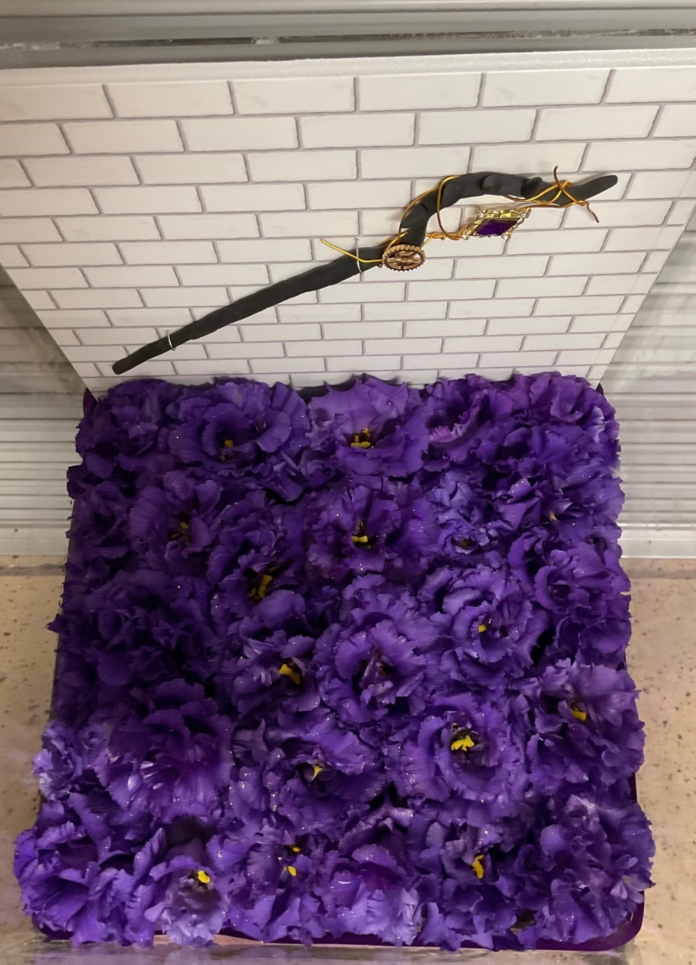 紫の花に金の塗料を垂らしてもらい、煌びやかさを出してもらった。