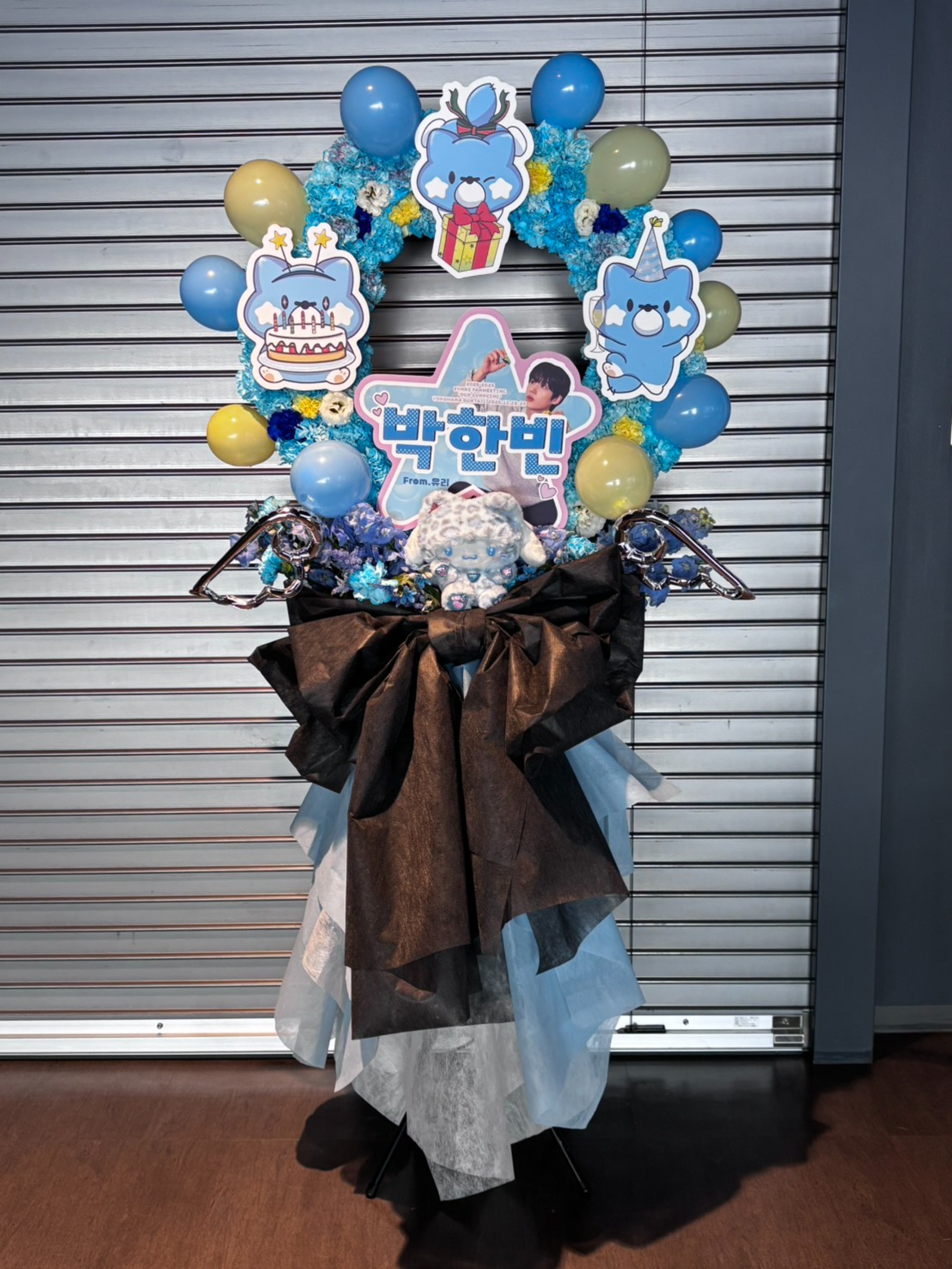 #35,000円-50,000円 #公演・出演祝い #フラワーデザイナー金巻 #水色 #スタンド花 #推し花 #横浜BUNTAI #パクハンビン #オリジナル立て札 #パネル装飾 #バルーン #アーチ