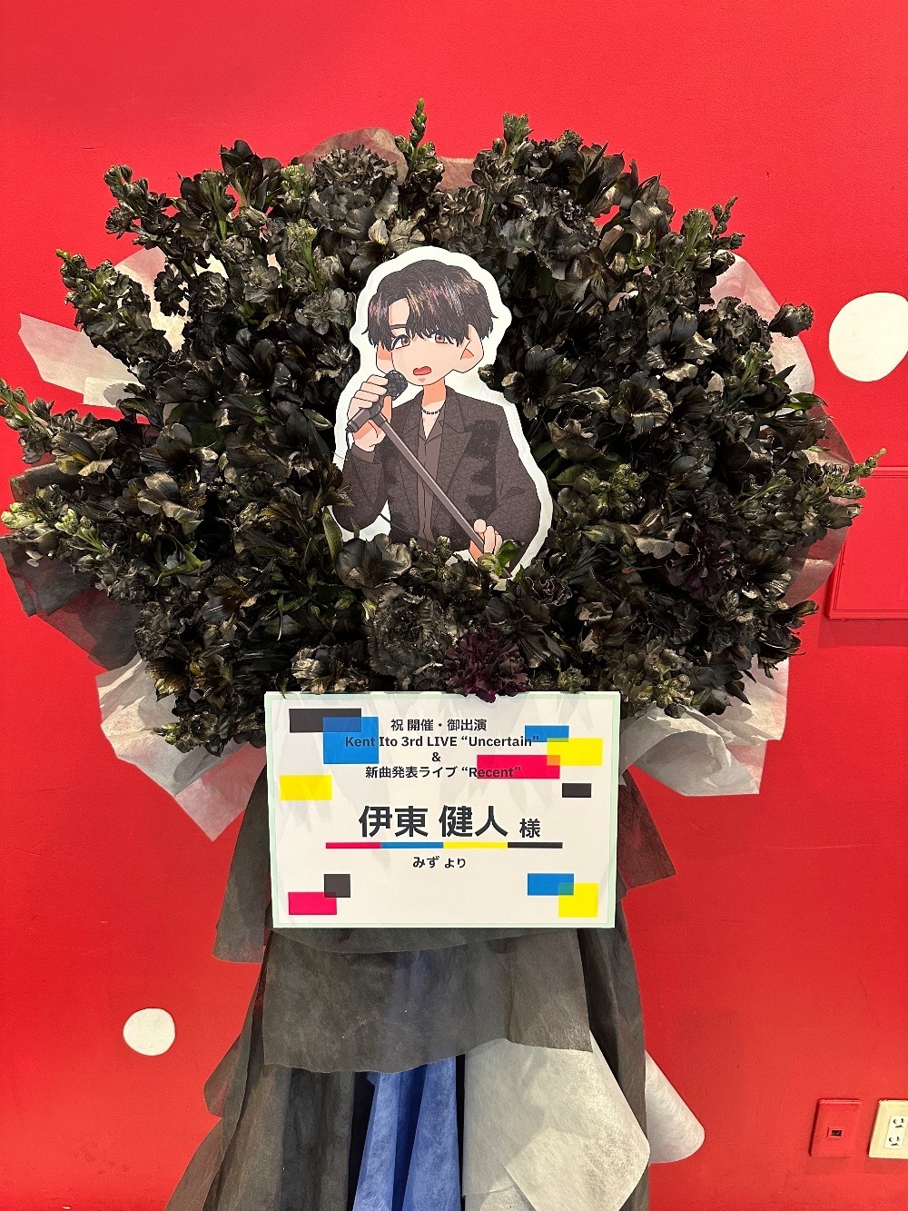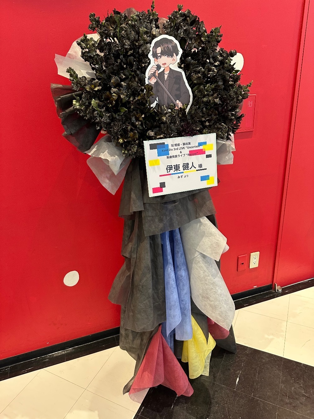 #35,000円-50,000円 #公演・出演祝い #フラワーデザイナー安井 #黒 #スタンド花 #推し花 #Kanadevia Hall #伊東健人 #声優 #歌手 #オリジナル立て札 #パネル装飾 #シック