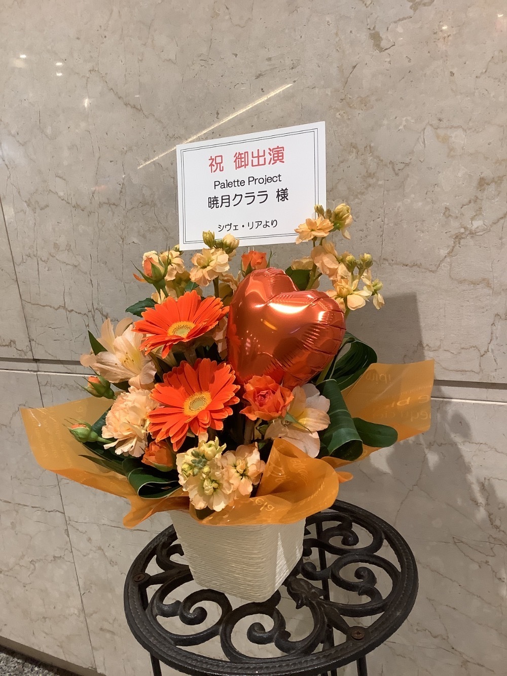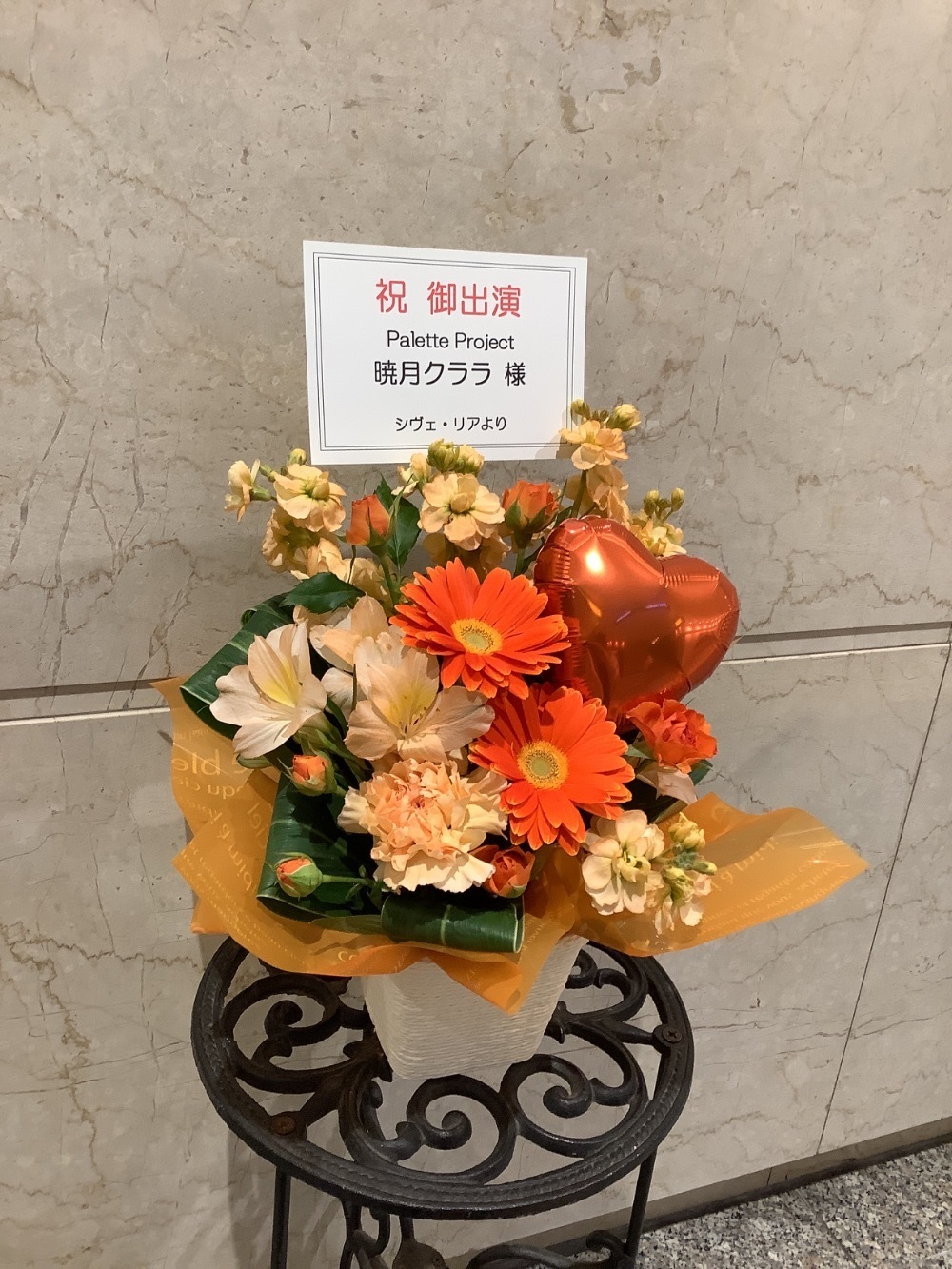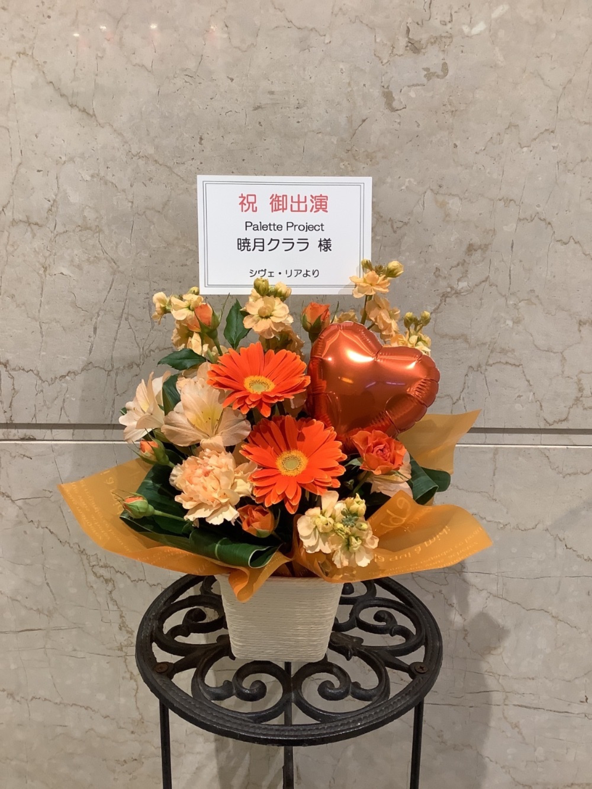 #-5,000円 #公演・出演祝い #フラワーデザイナーかわむら #オレンジ #楽屋花 #推し花 #大手町三井ホール #暁月クララ #Vtuber #バルーン