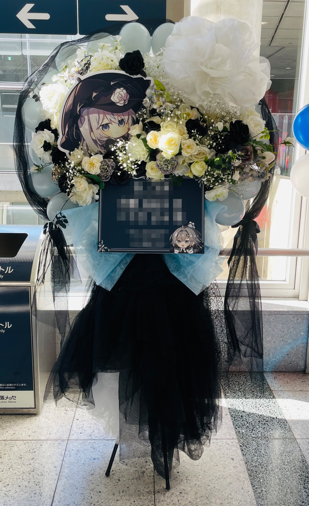 #35,000円-50,000円 #公演・出演祝い #フラワーデザイナー大川 #黒 #スタンド花 #推し花 #シック #ジャイアントフラワー #パネル装飾 #バルーン