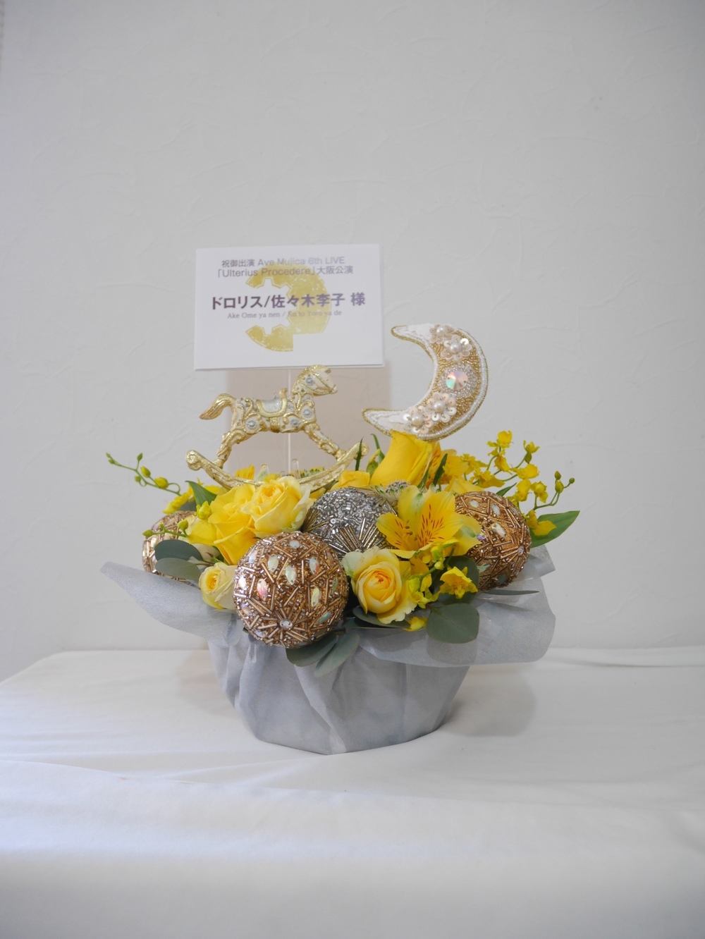 #6,000円-9,000円 #公演・出演祝い #フラワーデザイナー岡崎 #黄 #楽屋花 #推し花 #グランキューブ大阪 #佐々木李子 #声優 #歌手 #オリジナル立て札