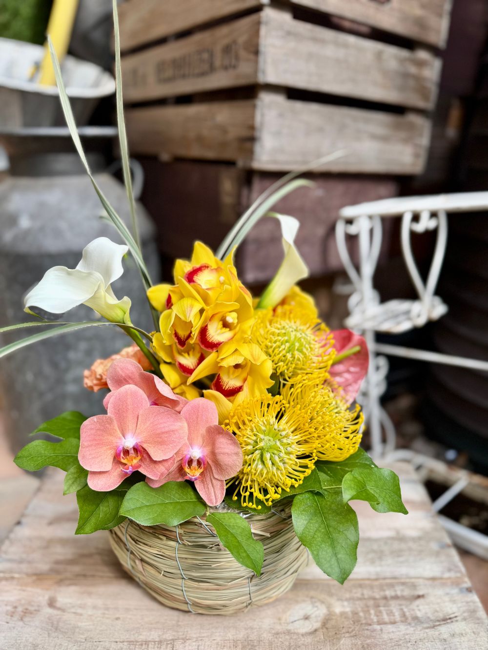 個性と華やかさを兼ね備えた生花アレンジメント。