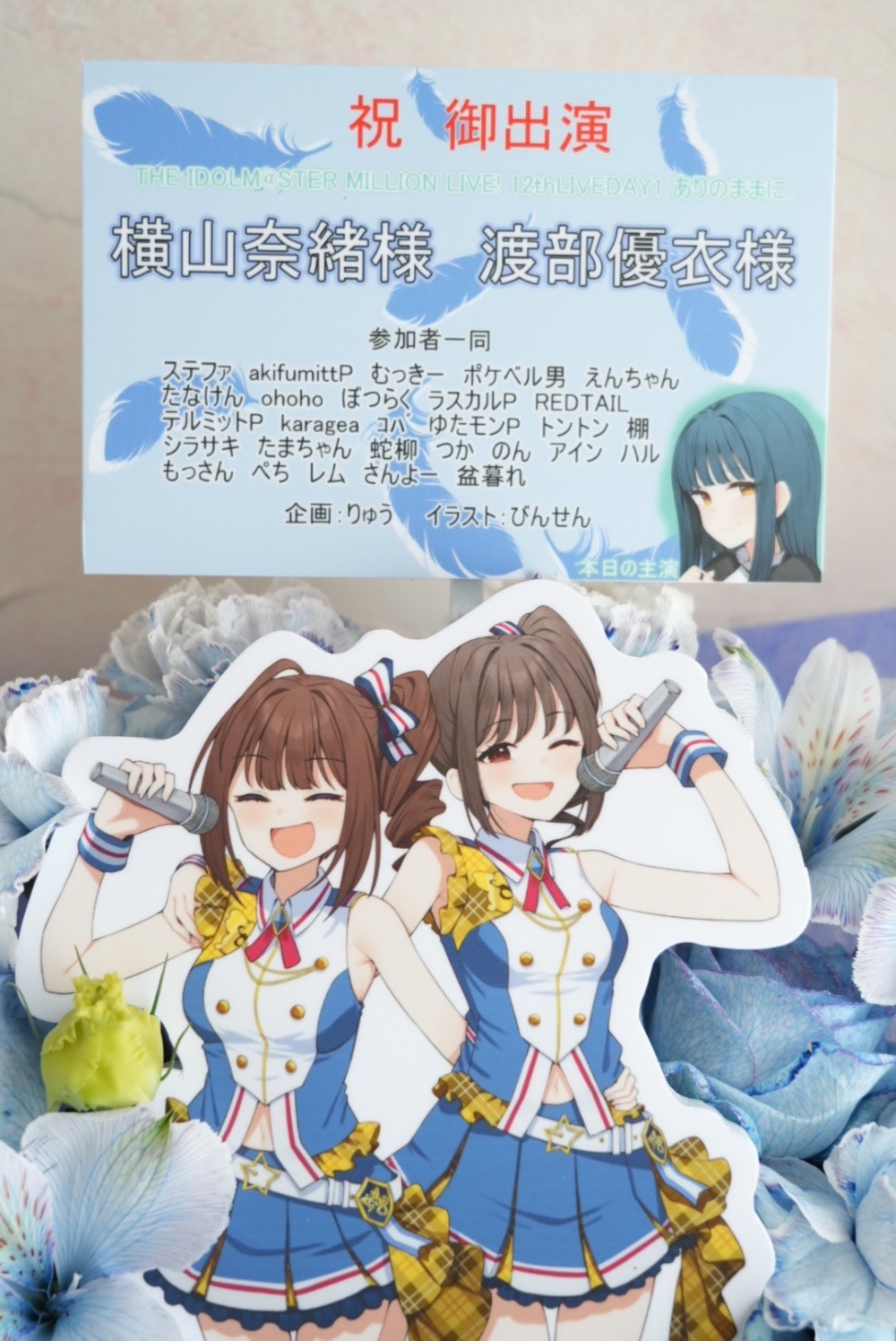 #10,000円 #公演・出演祝い #フラワーデザイナー成田 #ブルー #楽屋花 #推し花 #京王アリーナ #渡部優衣 #声優 #アイマスシリーズ #オリジナル立て札 #パネル装飾 #リボン
