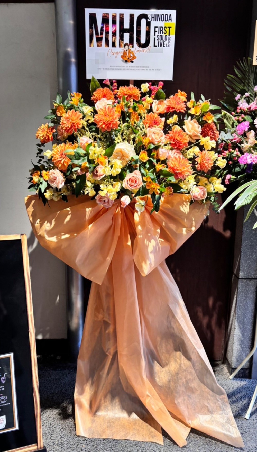 #35,000円-50,000円 #公演・出演祝い #フラワーデザイナー穂積 #オレンジ #スタンド花 #推し花 #六本木クラップス #信田美帆 #オリジナル立て札