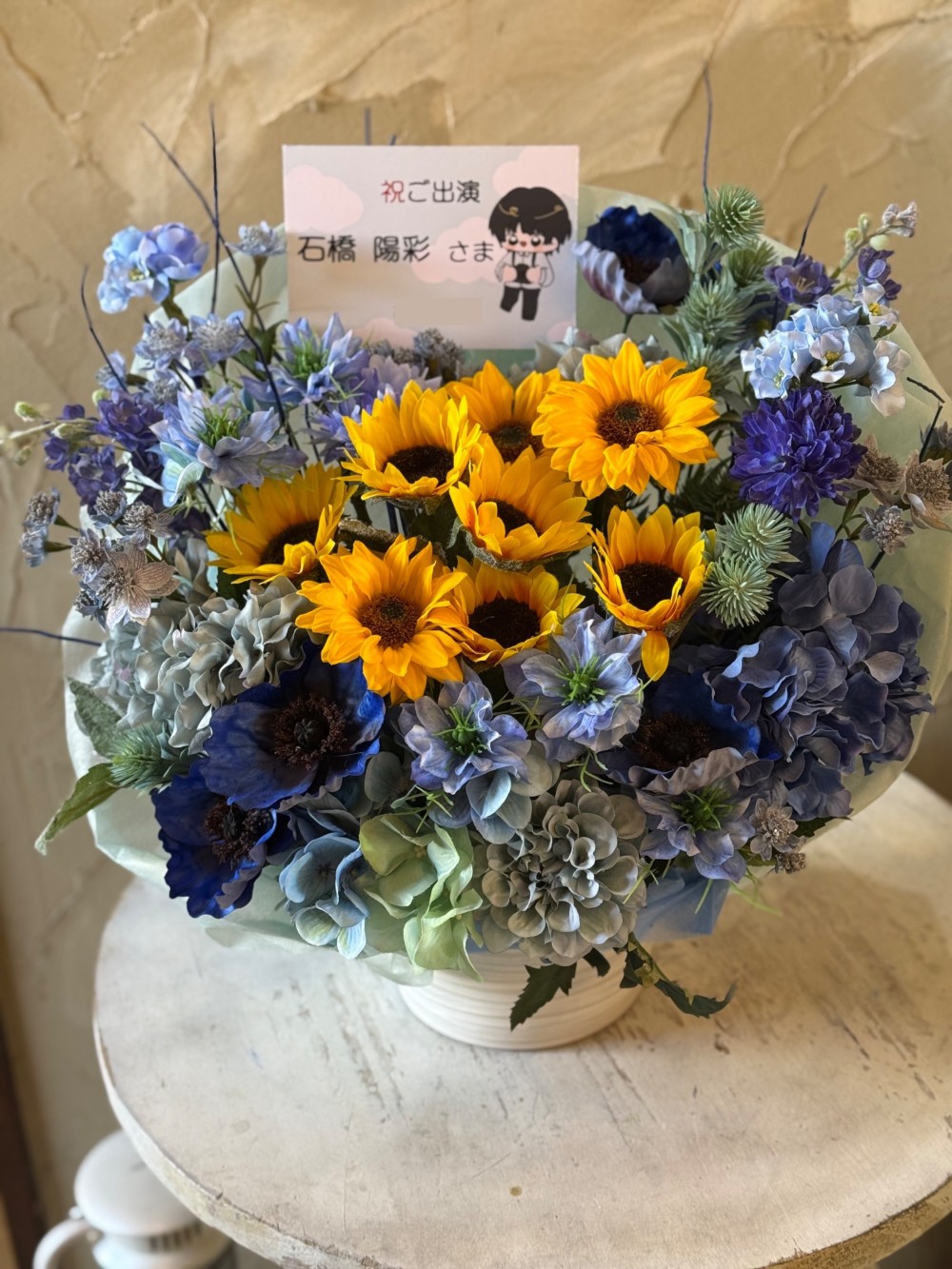 #17,000円 #公演・出演祝い #フラワーデザイナー牧 #水色 #造花 #楽屋花 #推し花 #あるあるCity #石橋陽彩 #声優 #俳優 #オリジナル立て札