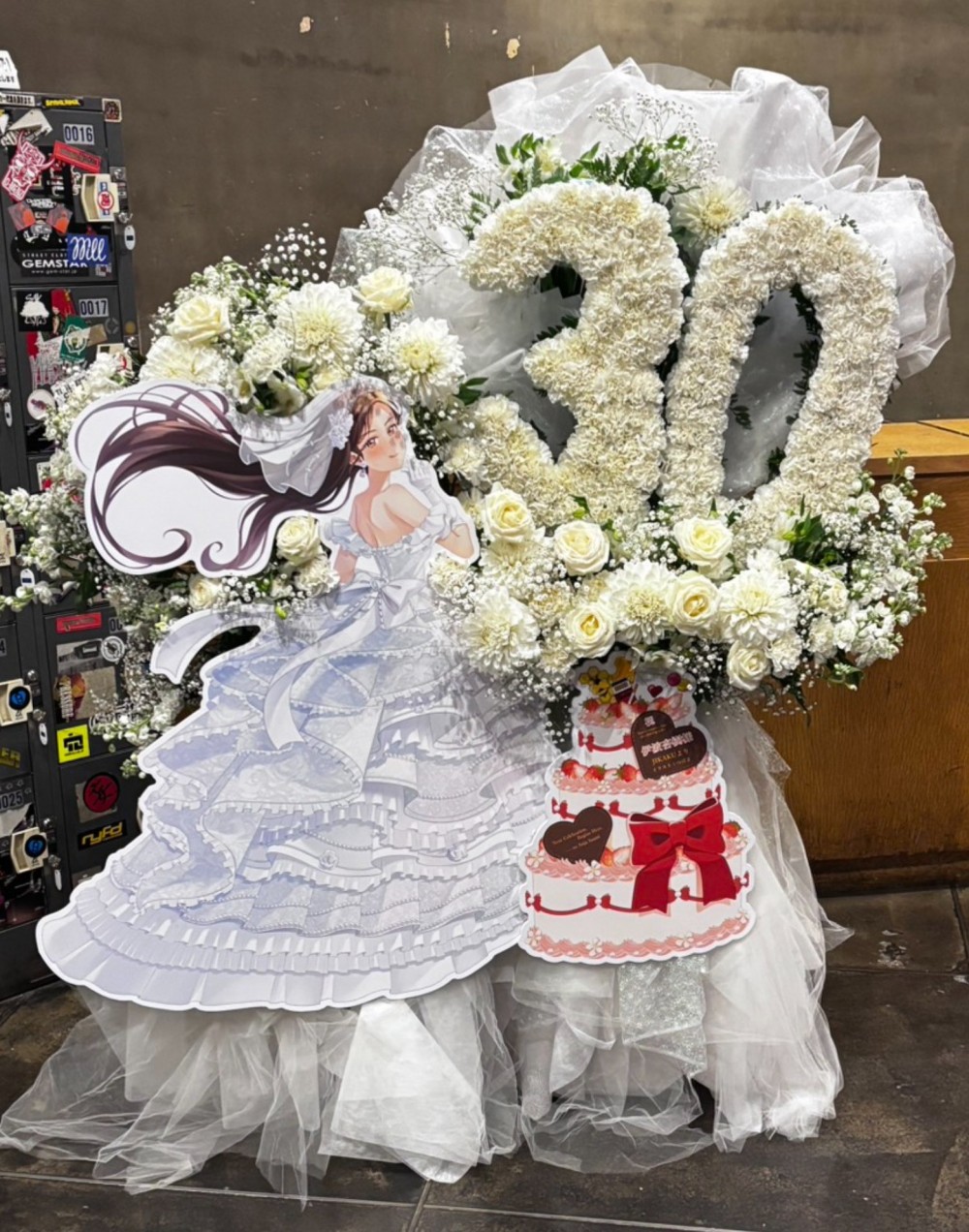 #120,000円 #生誕イベント・推しの誕生日 #フラワーデザイナー金巻 #白 #スタンド花 #推し花 #横浜ベイホール #伊波杏樹 #声優 #オリジナル立て札 #パネル装飾 #ロゴフラワー #ボリューム #インパクト