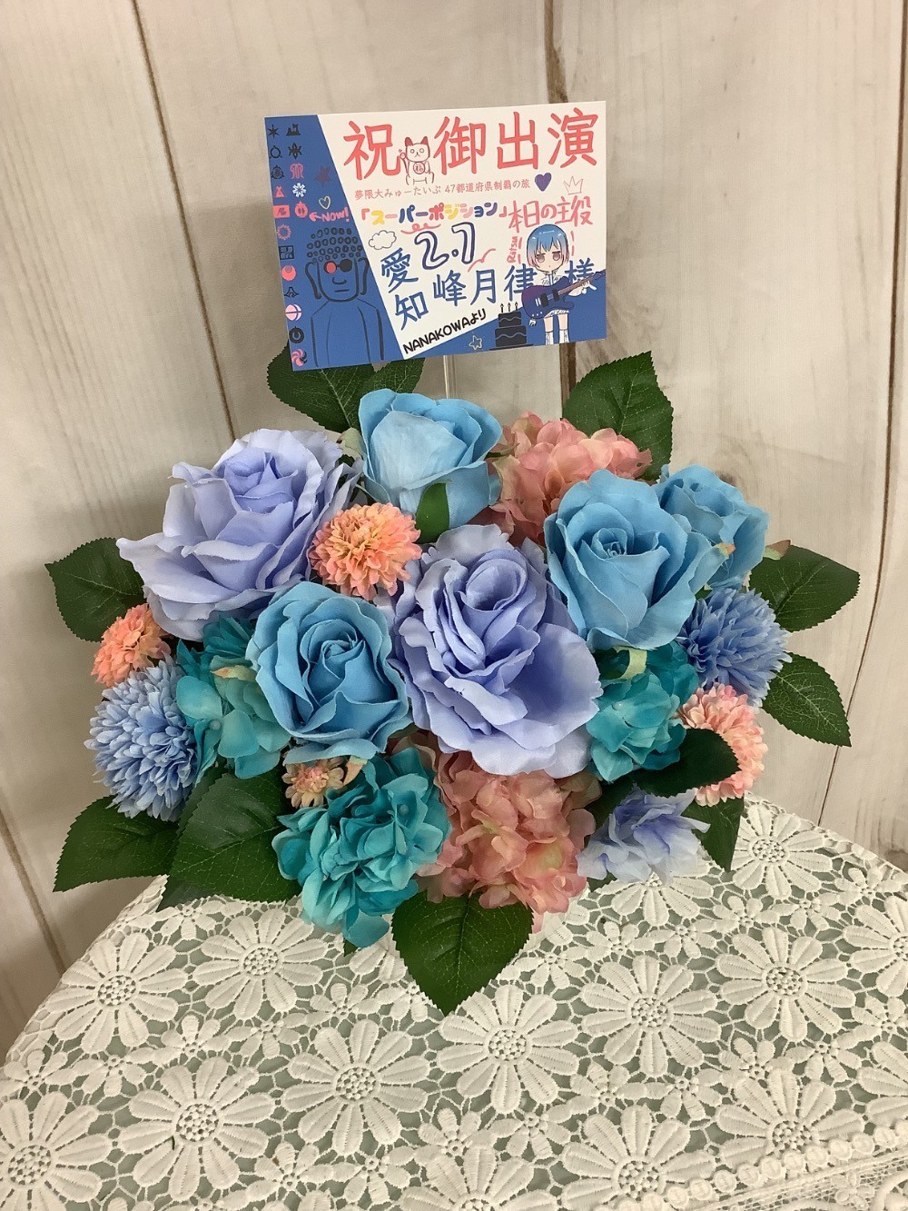 #5,500円 #公演・出演祝い #フラワーデザイナーかわむら #水色 #造花 #楽屋花 #推し花 #ボトムライン #峰月律 #夢限大みゅーたいぷ #BanG Dream! #オリジナル立て札