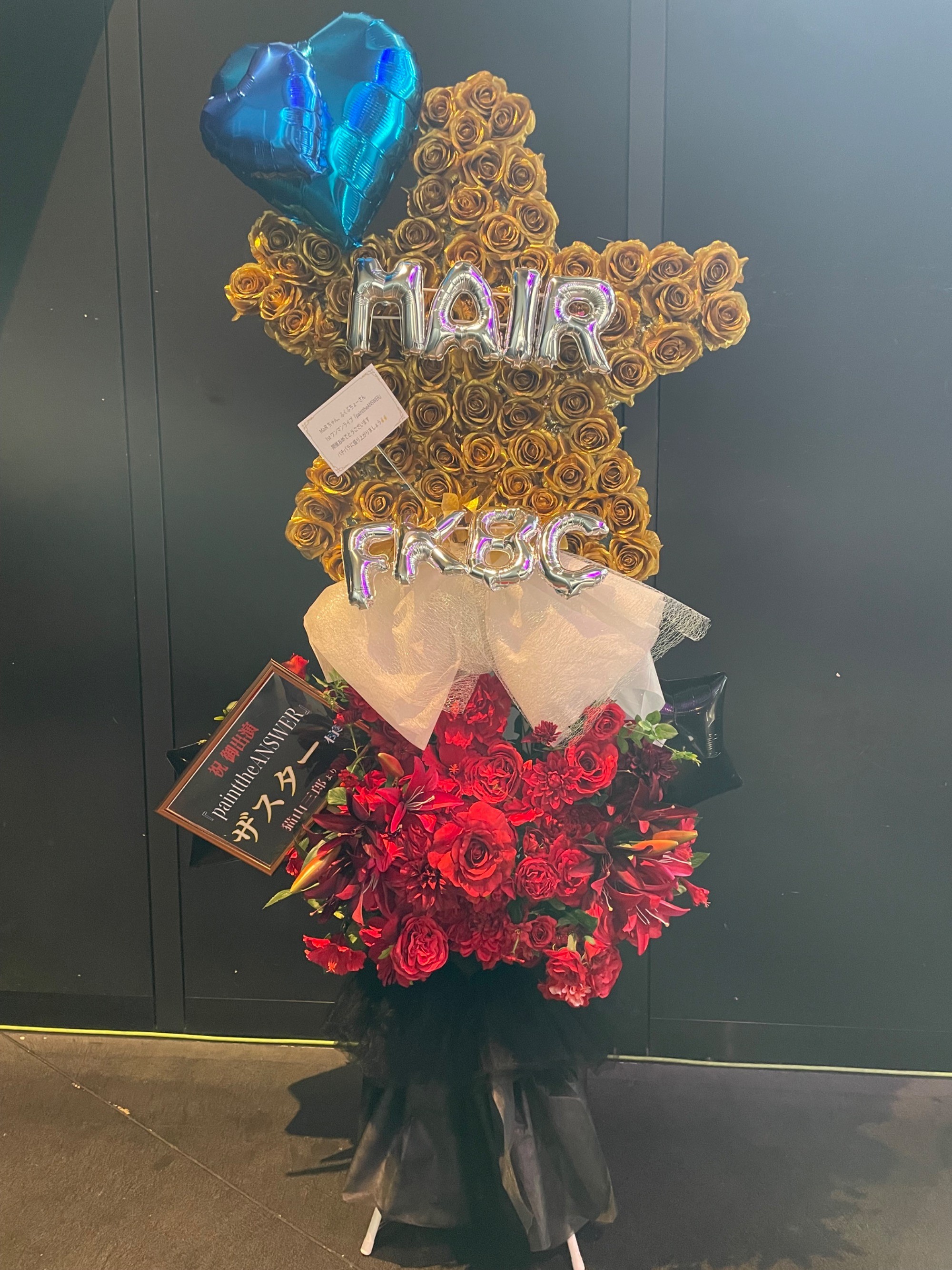 #115,000円 #公演・出演祝い #フラワーデザイナー大川 #赤 #スタンド花 #推し花 #池袋harevutai #ザスター #Vtuber #歌手 #オリジナル立て札 #バルーン #モチーフ #2段フラスタ
