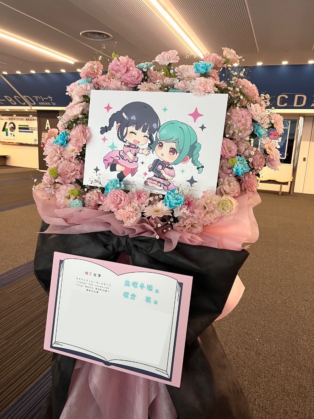 #35,000円-50,000円 #公演・出演祝い #フラワーデザイナー宮崎 #ピンク #スタンド花 #推し花 #横浜アリーナ #鬼塚冬毬 #坂倉花 #声優 #オリジナル立て札 #パネル装飾