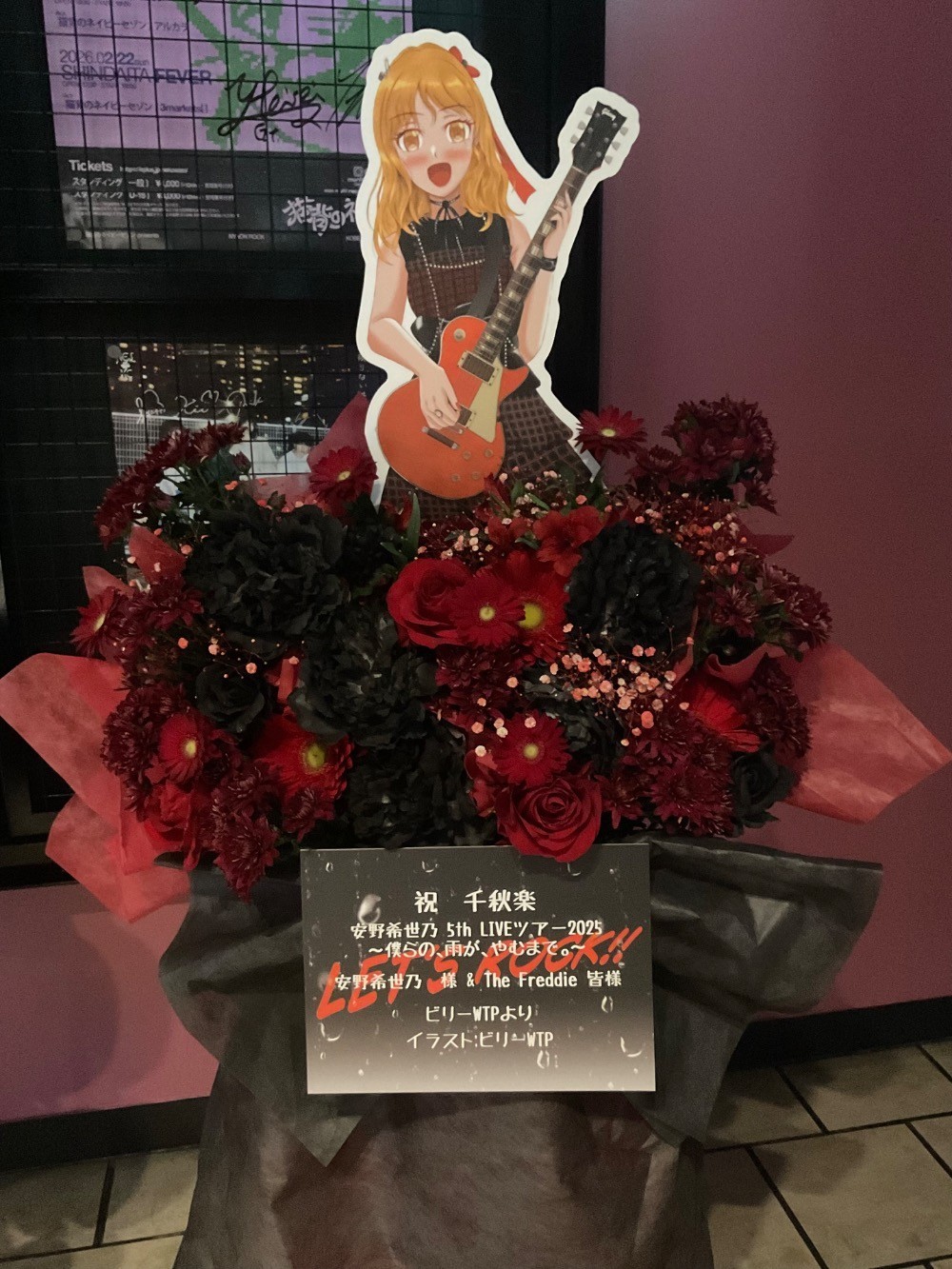 #20,000円-30,000円 #公演・出演祝い #フラワーデザイナー杉浦 #赤 #スタンド花 #推し花 #大阪BIG CAT #安野希世乃 #声優 #歌手 #オリジナル立て札 #パネル装飾 #シック